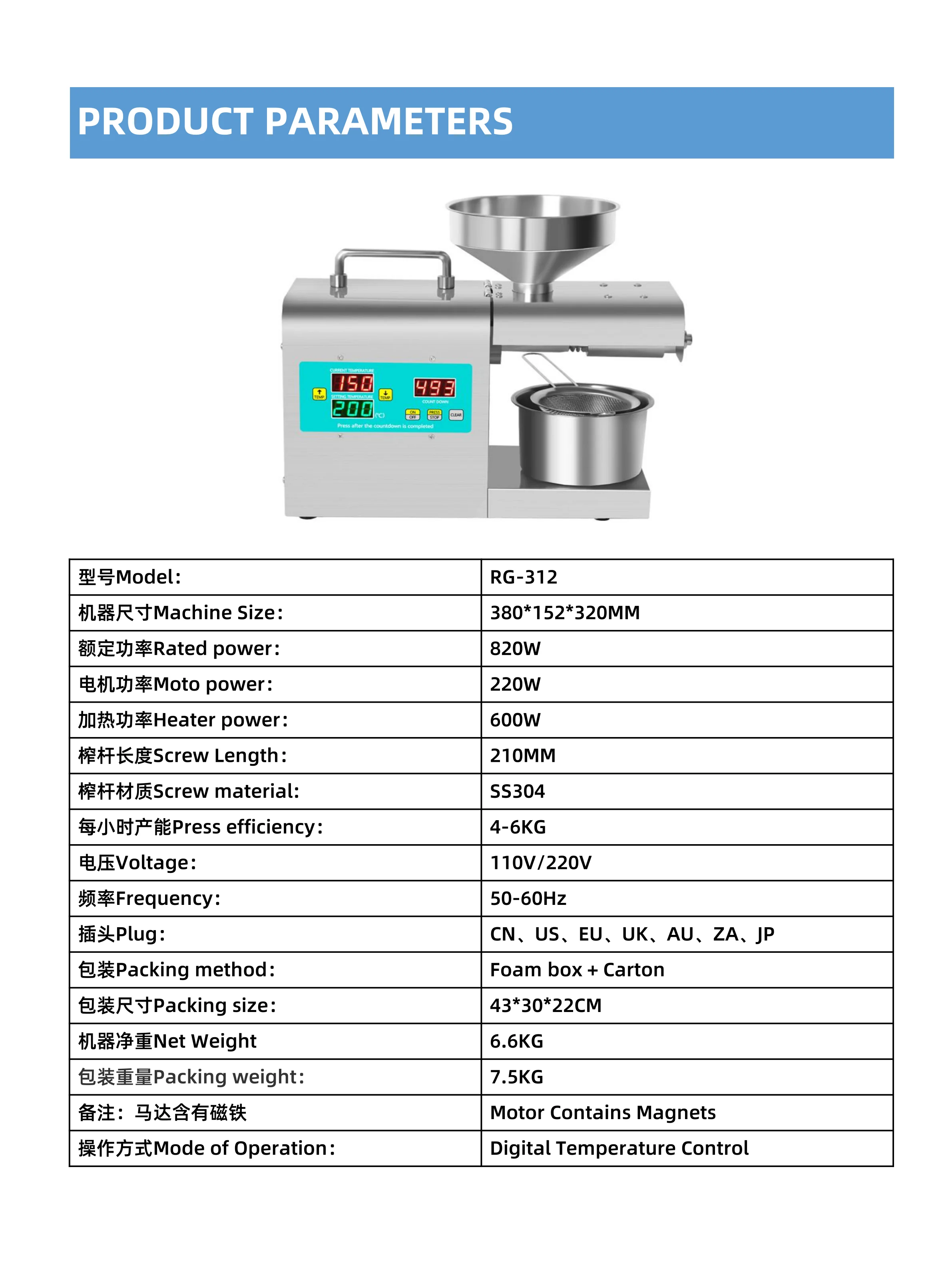 RG312 новый обновленный домашний Масляный Пресс с цифровым температ...