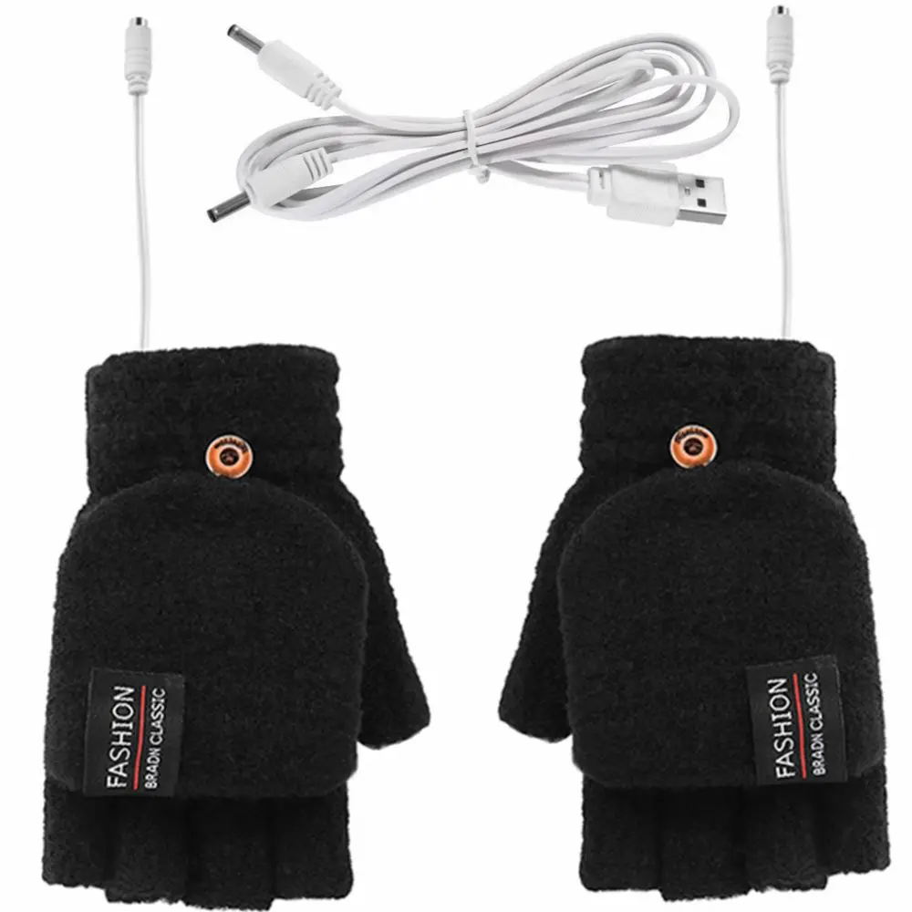 Взрослые Унисекс теплые перчатки с USB подогревом полуперчатки с ша...