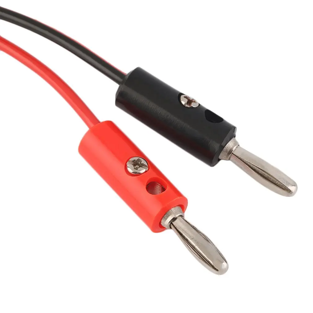 Характеристики:Одна сторона: около 4 мм разъем типа «банан»Другая сторона: около 35 мм маленький размер АллигаторМатериал проводника: сплавДиэлектрический Материал: пластикЦвет: красный и черныйДлина кабеля: 1 метр