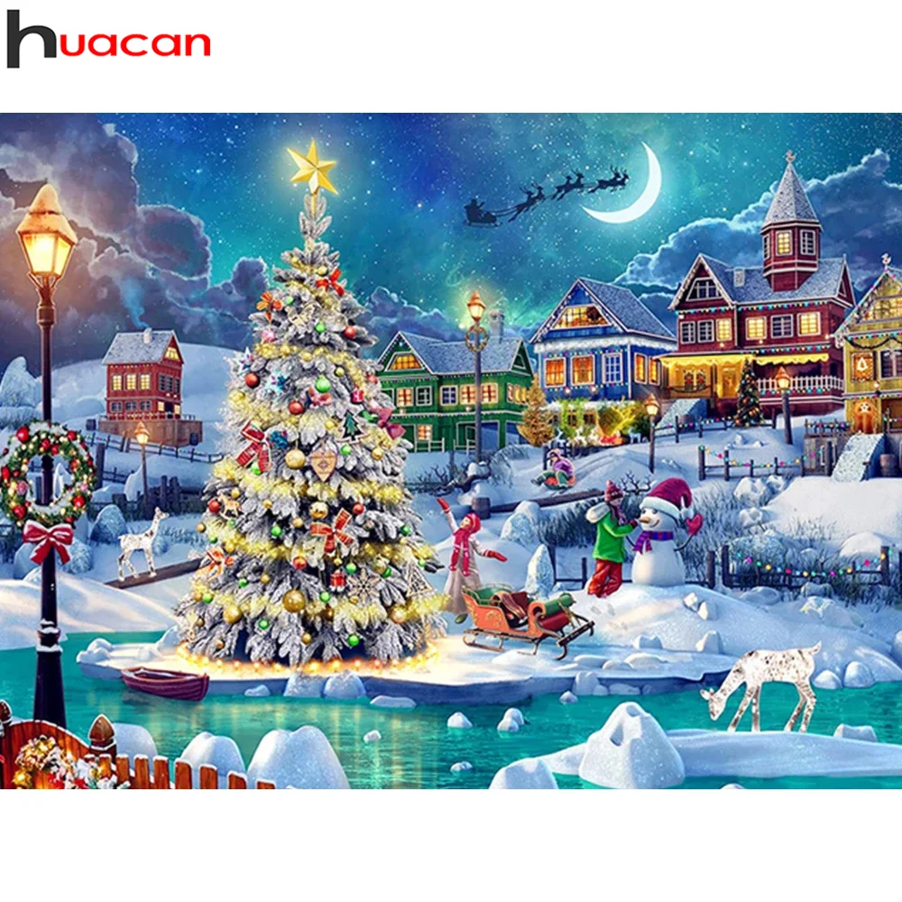Huacan бриллиантовый рисунок Рождество Бриллиантовая вышивка с изображением дерева мозаика зимний дом Декор для дома
