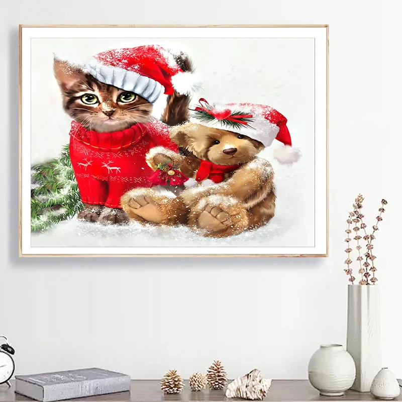 DIY бриллиантовый рисунок Рождество кошки Настенный декор 5D алмазная вышивка мозаика крестиком ремесла Navidad домашний декор Новогодний подарок