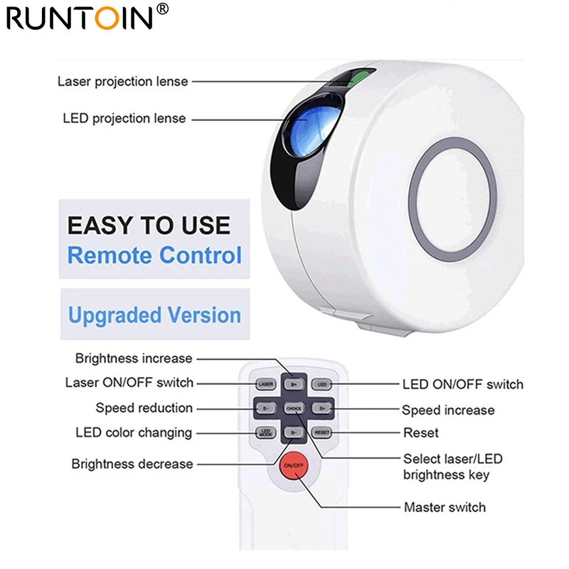 【 Пульт дистанционного управления 】вы больше не беспокоитесь о том, чтобы выйти из кровати или дивана, чтобы включить или выключить Ночной светильник, пульт дистанционного управления также может управлять звездным прожектором светильник, красочный светильник s, регулировка яркости, свободно включать/выключать светильник, изменение светильник ing режим.
