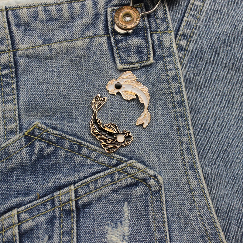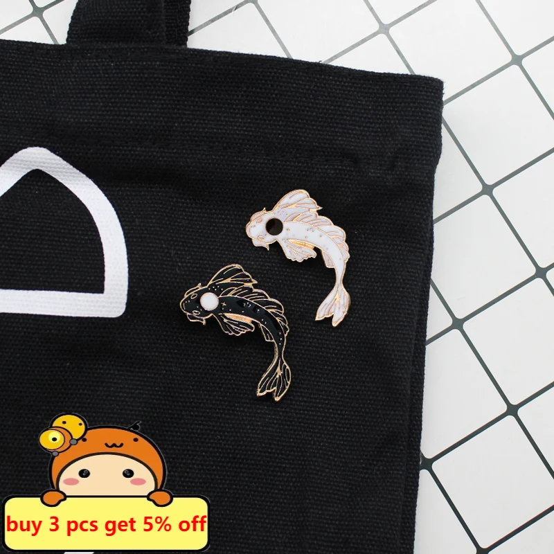Симпатичные черно-белые броши в виде рыбки, карпа, золотой рыбки, и...