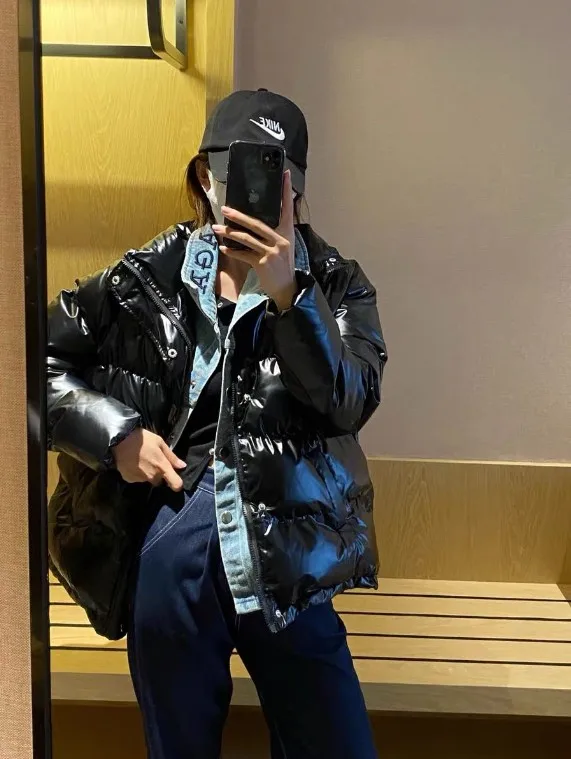Короткое пальто с подкладкой в Корейском стиле, Женская куртка на осень и зиму, новинка 2021, короткая стеганая куртка из двух частей с имитацией джинсовой ткани