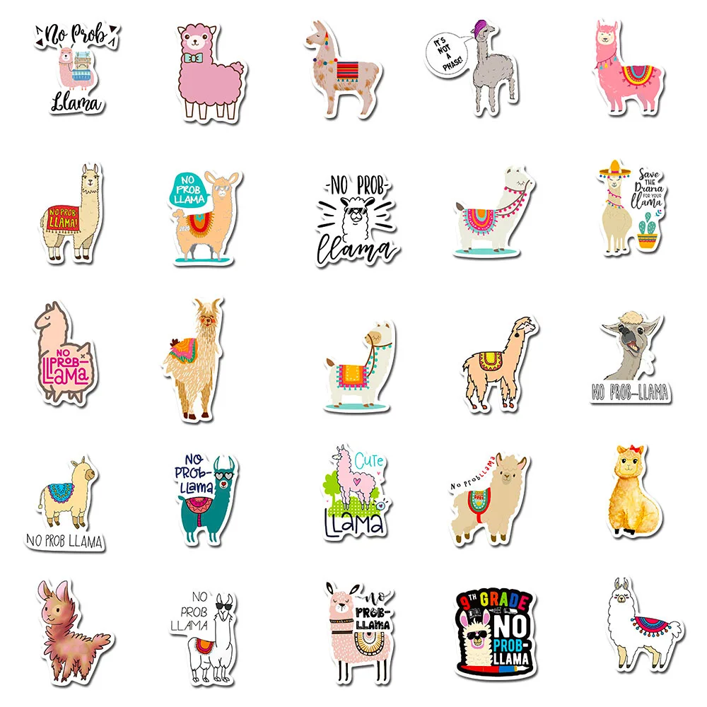50 шт. милые наклейки-ламы Альпака без проба, наклейки для гитары, ...