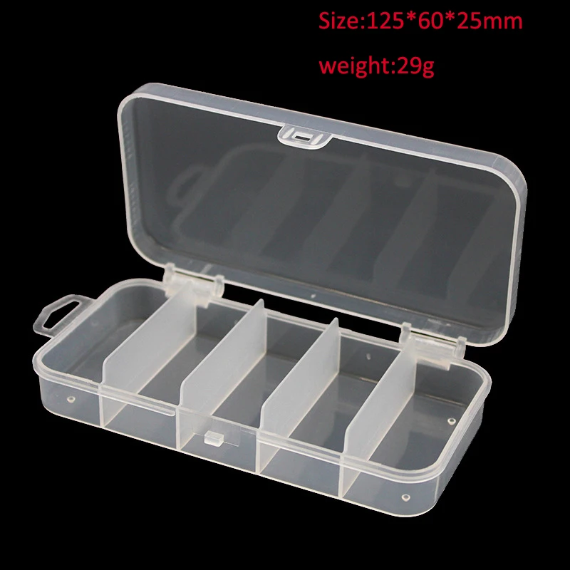 Материал: ПВХИспользование: для океана, лодки, рек, озера, пруда, ручной рыбалки и так далее.Особенности:1. Идеально подходит для большинства видов рыбалки.2. Прекрасный инструмент для любителей рыбалки.3. Удобный чехол поможет вам с первого взгляда найти рыболовные снасти.Размер:5 отделений: 125*60*25 мм 29 г10 отделений: 128*60*23 мм 30 гВ комплект входит: 1 коробка для рыболовных снастей