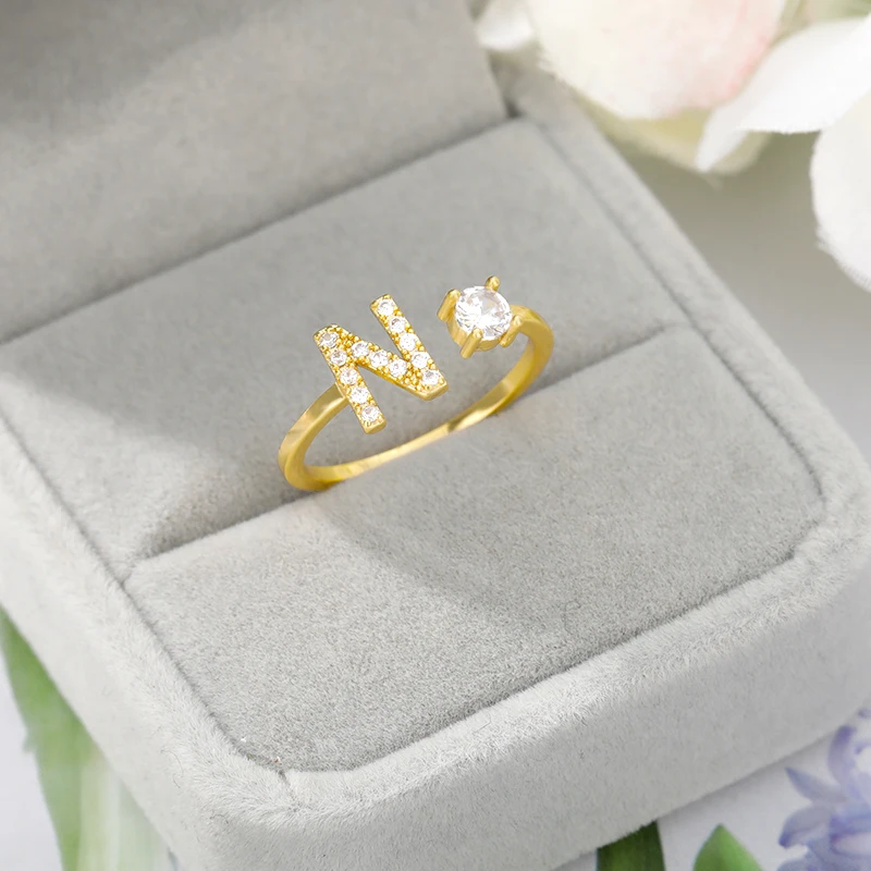 Кольца женские регулируемые, с золотым цирконием, 2021, A-Z, кольца...