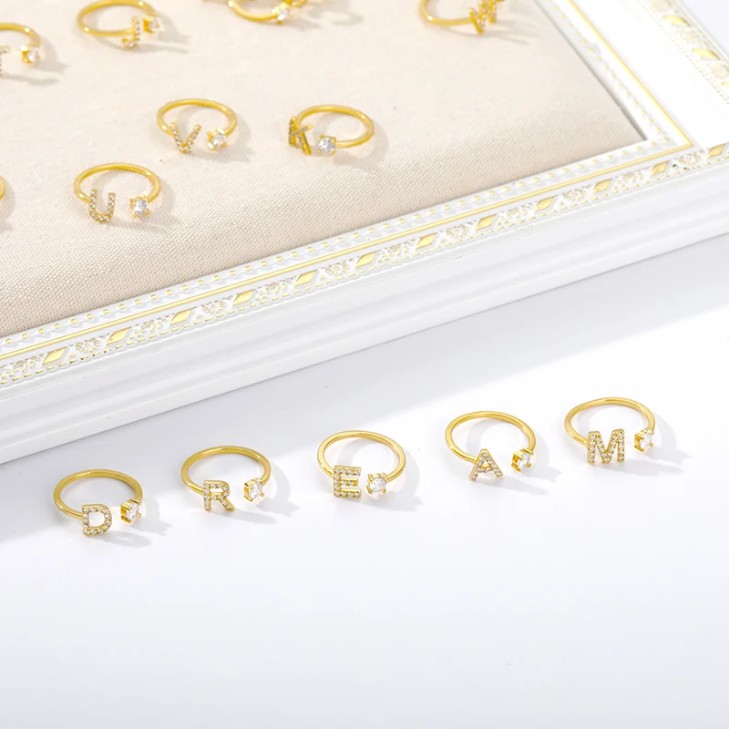 Кольца с буквами инициала для женщин, регулируемые открытые кольца с золотым алфавитом, креативное кольцо на палец, модное очаровательное ювелирное изделие, подарок