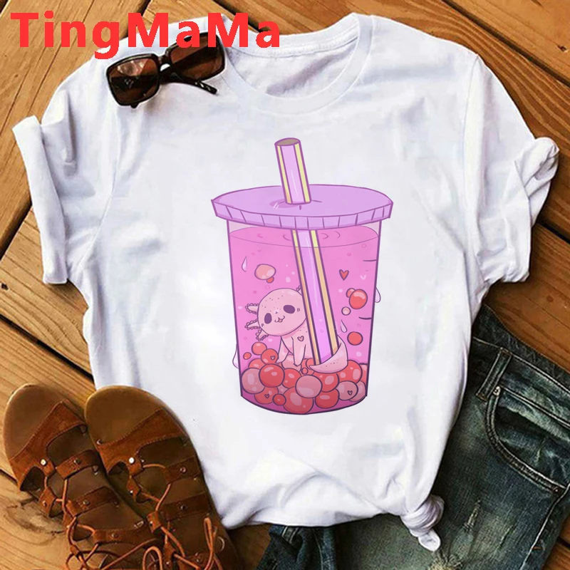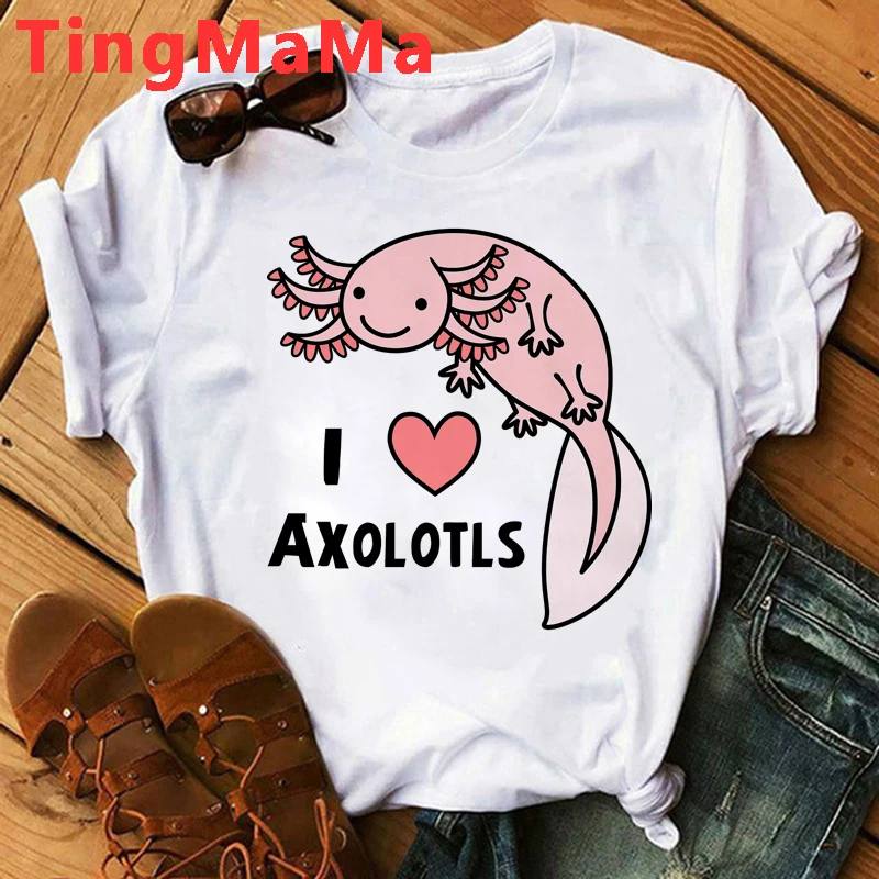 Kawaii Мультфильм Axolotl футболка Женские забавные летние топы аниме Графические футболки хип-хоп унисекс Милая Харадзюку Эстетическая женская футболка
