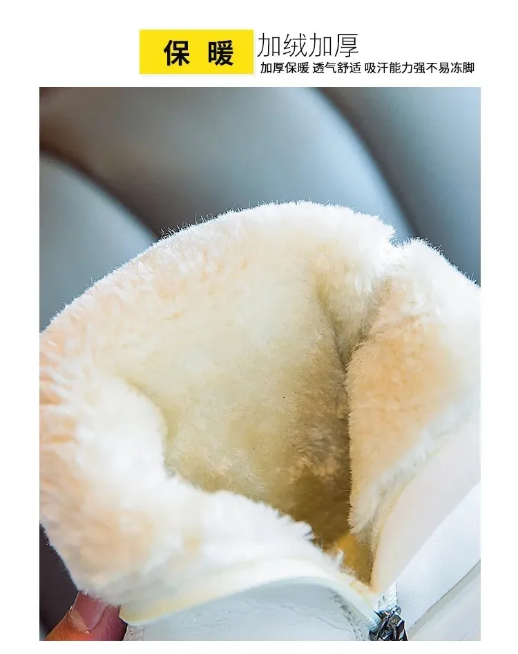 Детские ботинки на меху, зимние теплые белые черные ботинки из искусственной кожи до середины икры с круглым носком и нескользящей пряжкой, модные ботинки для девочек