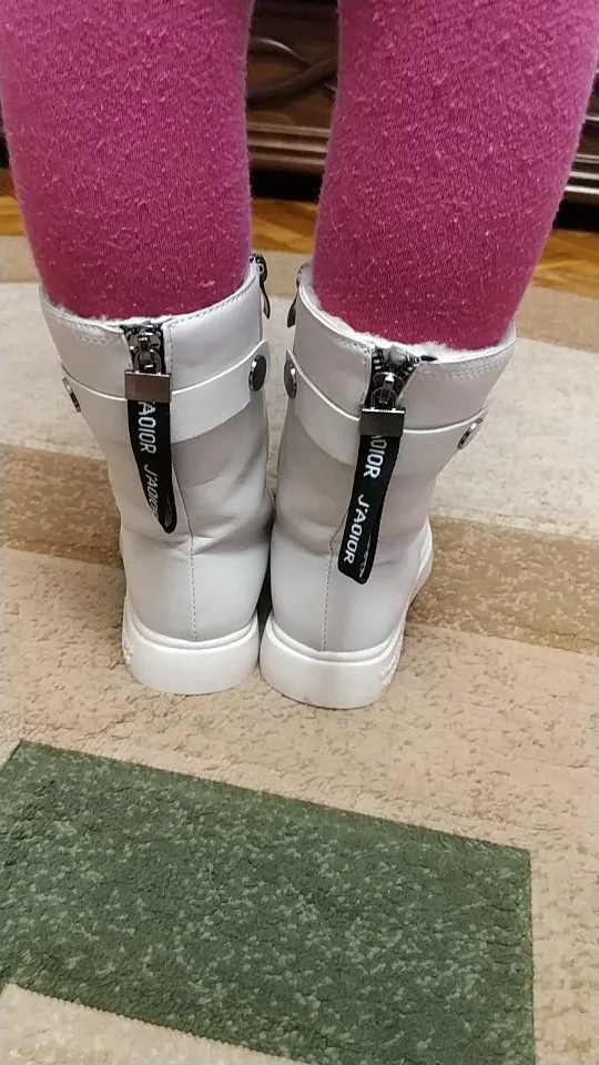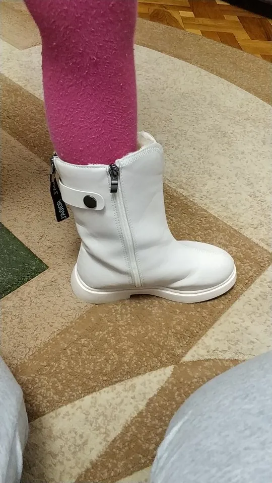Сапожки симпотичные, дочке понравились. Мех не сильно тёплый, тонковат, на холодную весну, осень. Подошва мягкая резина-скользить, думаю, не будут. Размер соответствует, носим 33,заказали 34, подошло с запасиком для тёплого носочка. Доставка быстрая. Рекомендую. С продавцом не общалась.