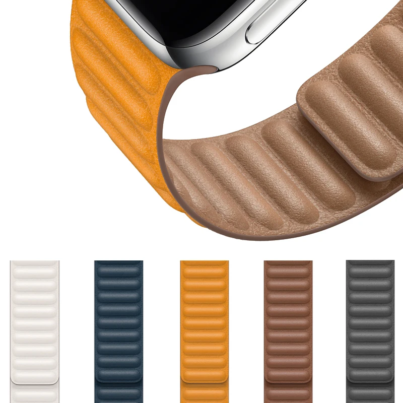 Ремешок кожаный для Apple Watch 7 6 5 4 SE band, оригинальный магни...