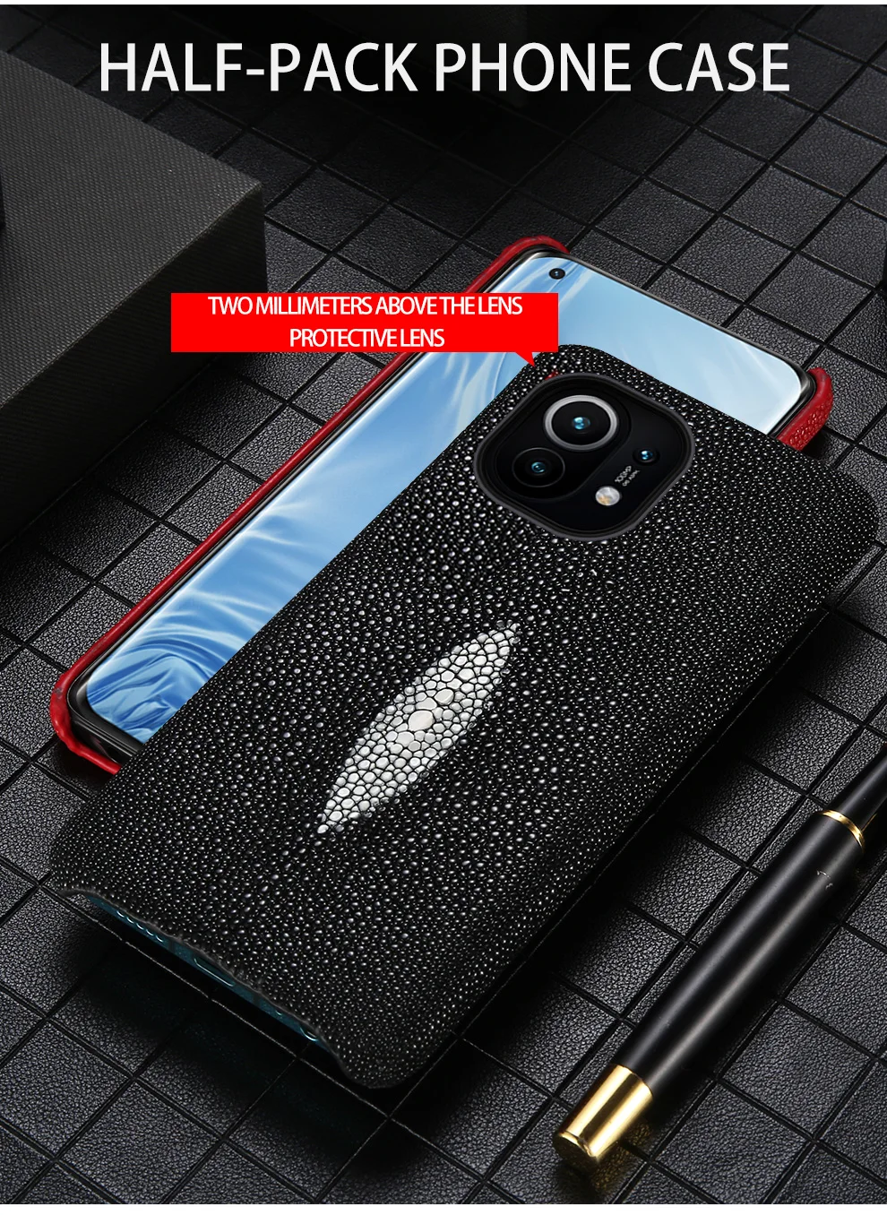 Чехол для Xiaomi Mi 11, 10T Lite, 11T, 10, Poco X3, M3 Pro, F3, GT, Redmi Note 10 Pro, 10S, Note 9, 8 Pro, из натуральной кожи ската