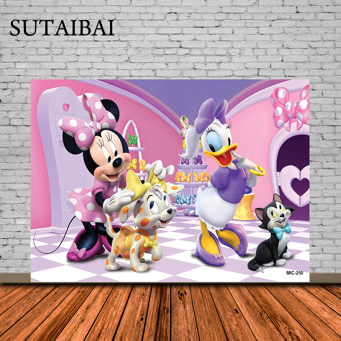 Розовый фон для дня рождения баннер Минни Маус Маргаритка утка тематический фон для детского праздника декор для дня рождения девочек