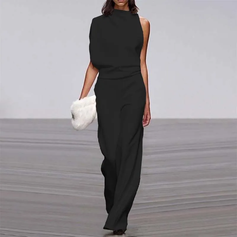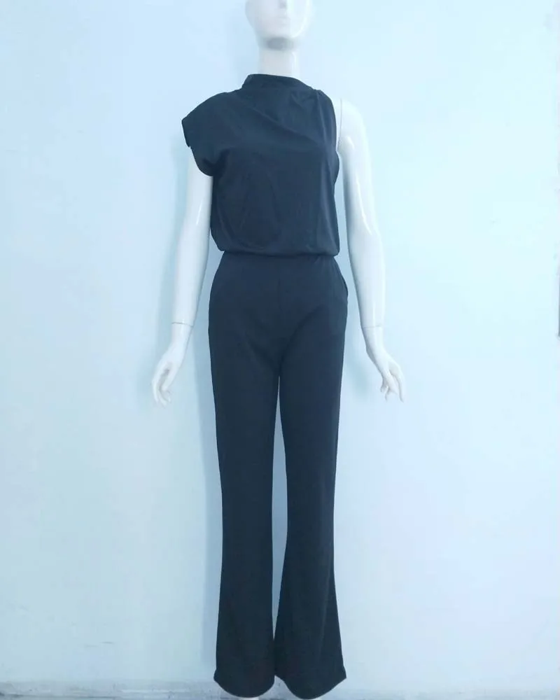 Комбинезон женский однотонный на одно плечо, элегантный офисный веч...