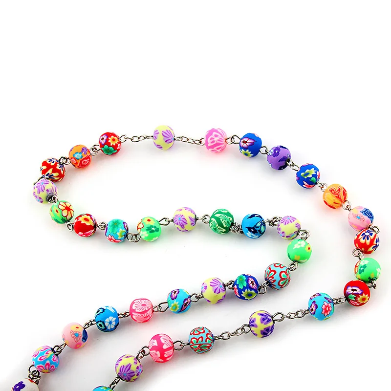 Цветные католические четки, ожерелье из полимерной глины, круглые б...