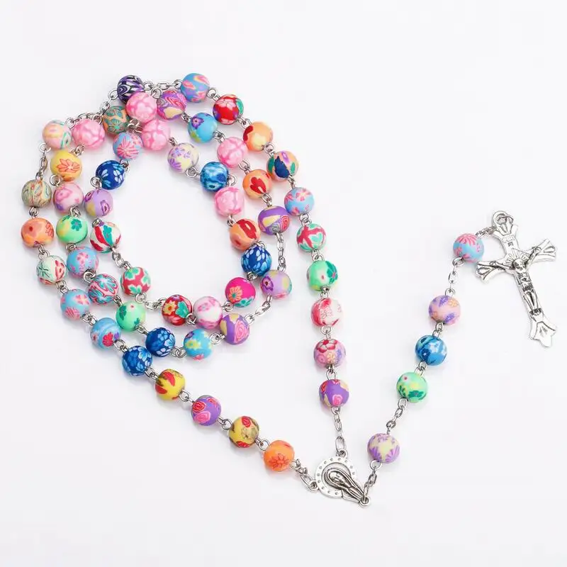 Красочный католицизм молитва Полимерная глина бисер религиозные украшения Иисус ожерельлье с Девой Марией Модные Винтажные Подарки для женщин