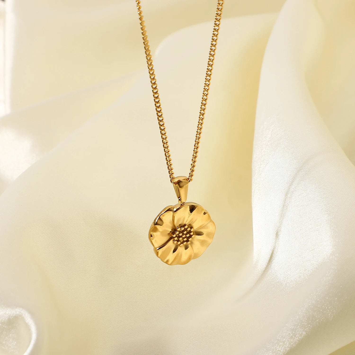 Женское ожерелье с подвеской в виде цветка мака, из нержавеющей стали