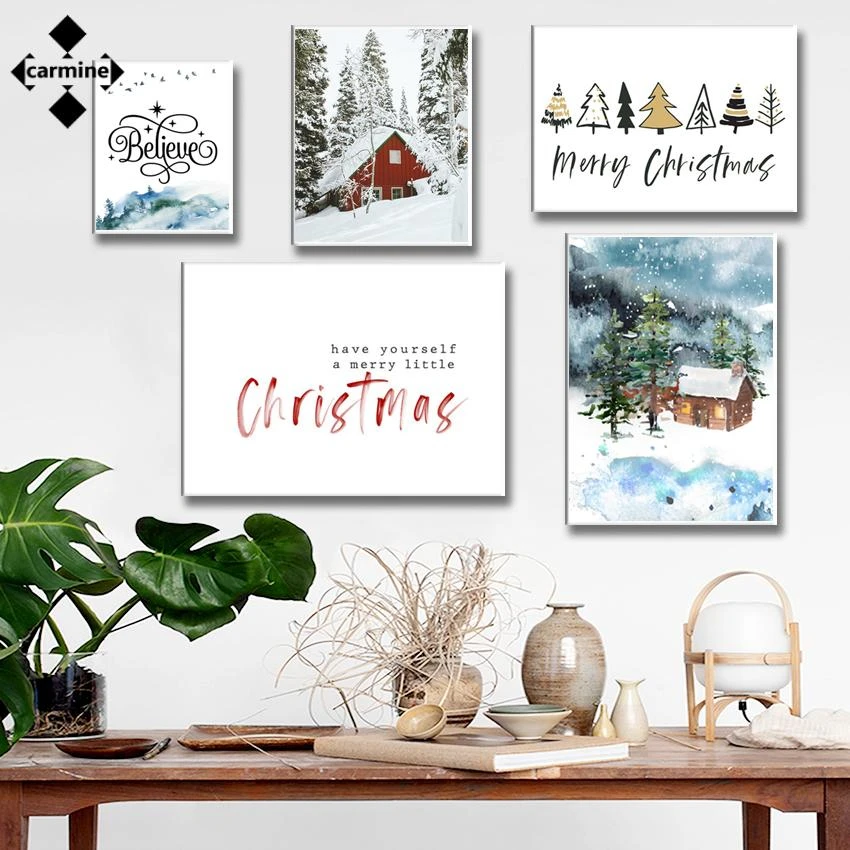 Рождественская живопись холст Рождественская елка холст стены Искусство алфавит в скандинавском стиле домашний декор картины праздничные подарки