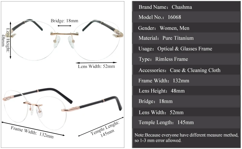 Оправа светильник очков унисекс, без оправы, титановый рецепт