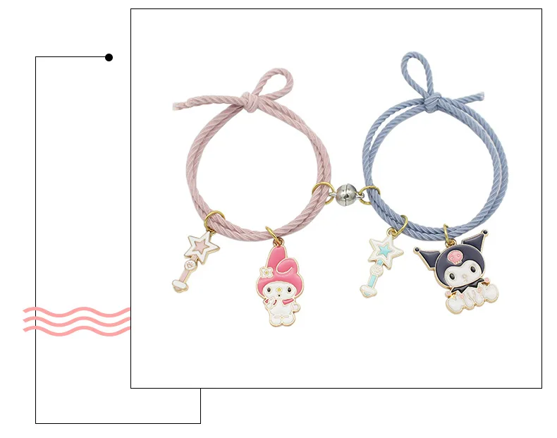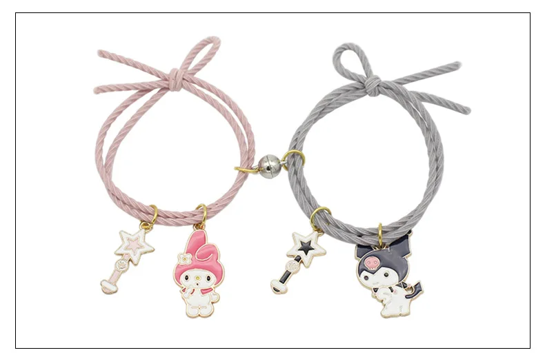 Милый мультяшный браслет для пары, магнитный браслет с шариками, подарок для мужчин и женщин, браслет с подвесками дружбы, ювелирные изделия из эластичной веревки