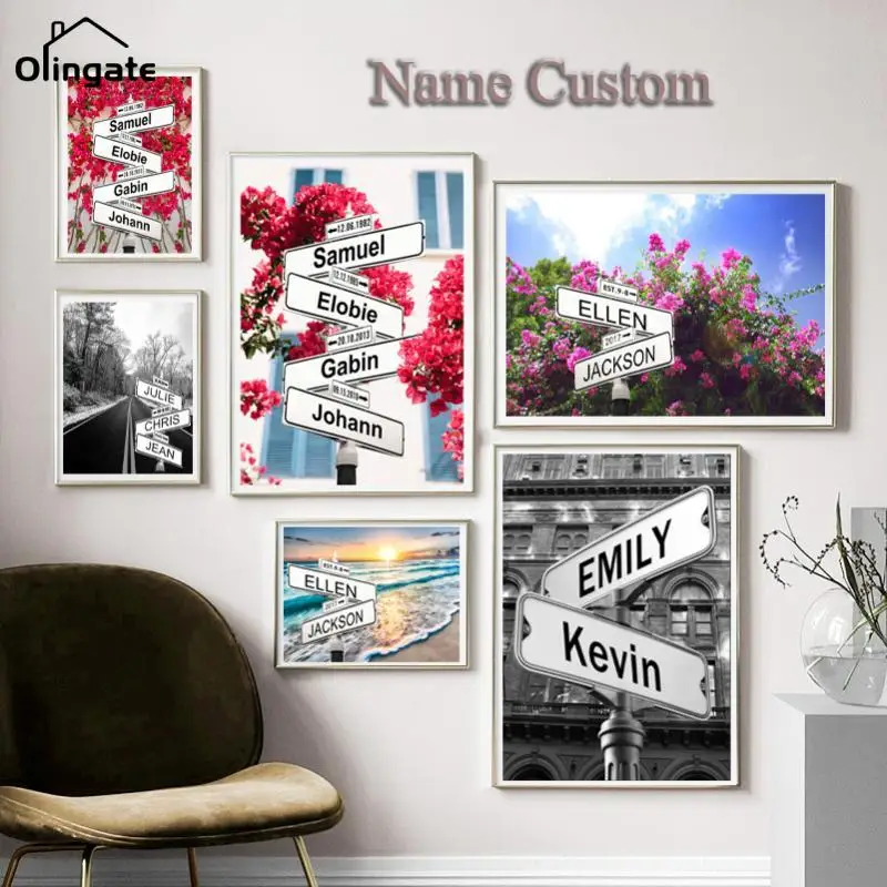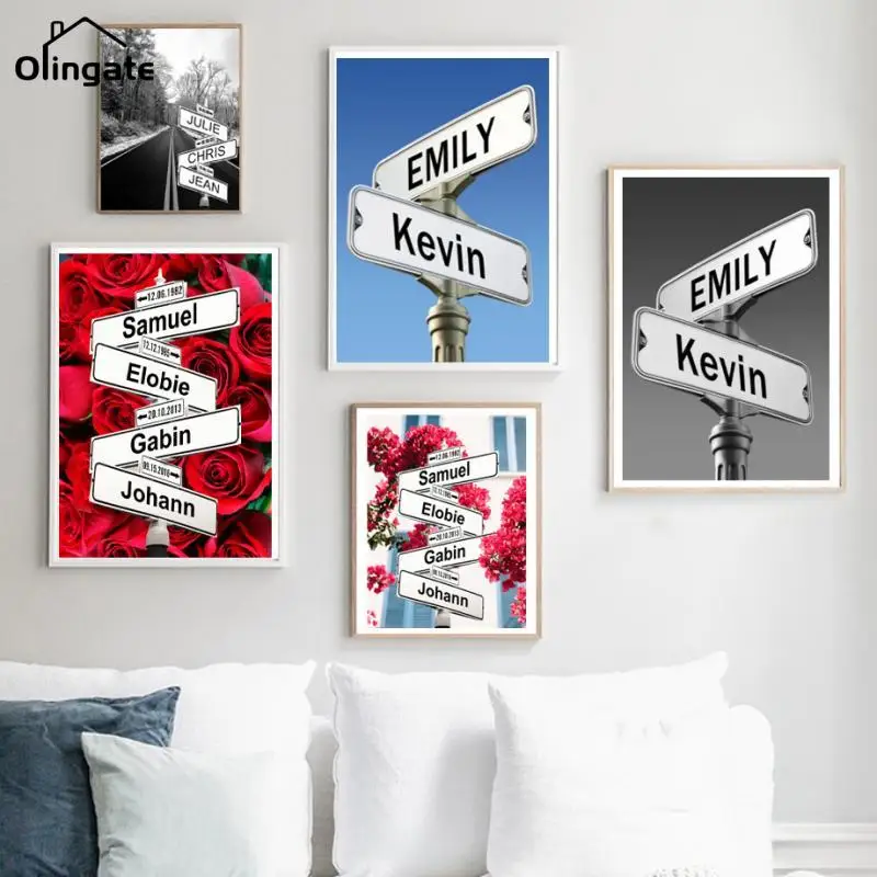 Настенная живопись на холсте с именем на заказ, персонализированный пересечение, уличный знак, 2-5 именадата, плакаты, подарки для пар на годовщину