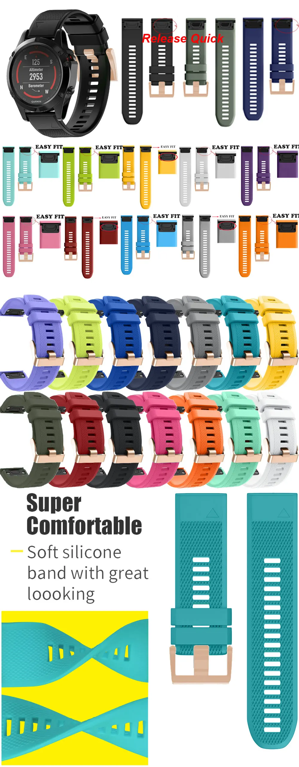Band Material TypeQuick Release Silicone Easy fit