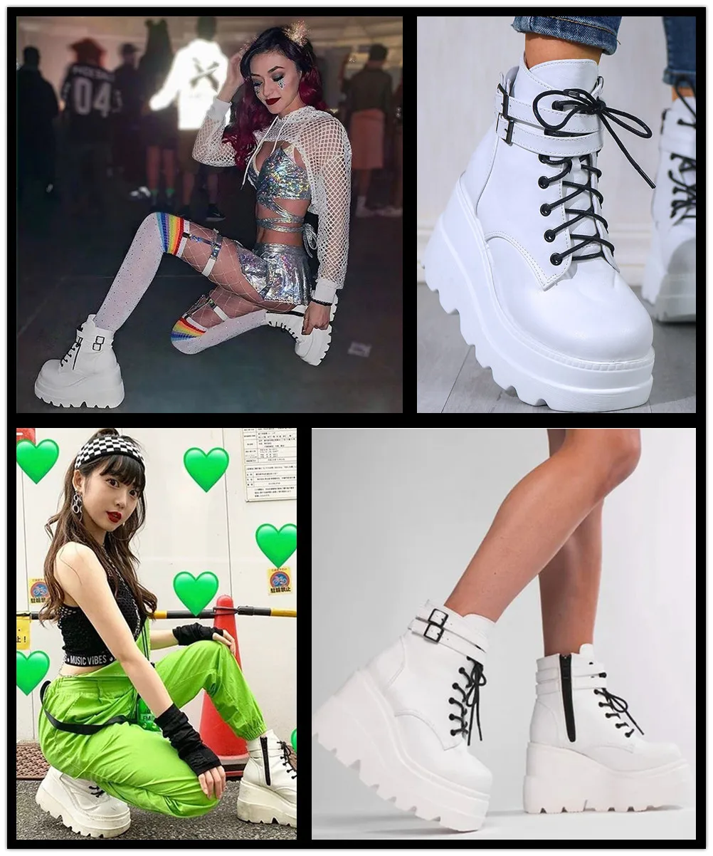 Стиль 1:{2021ДосугКрасивые Дизайнерские ботильоны на танкетке; Женские мотоботы; Обувь на платформе}