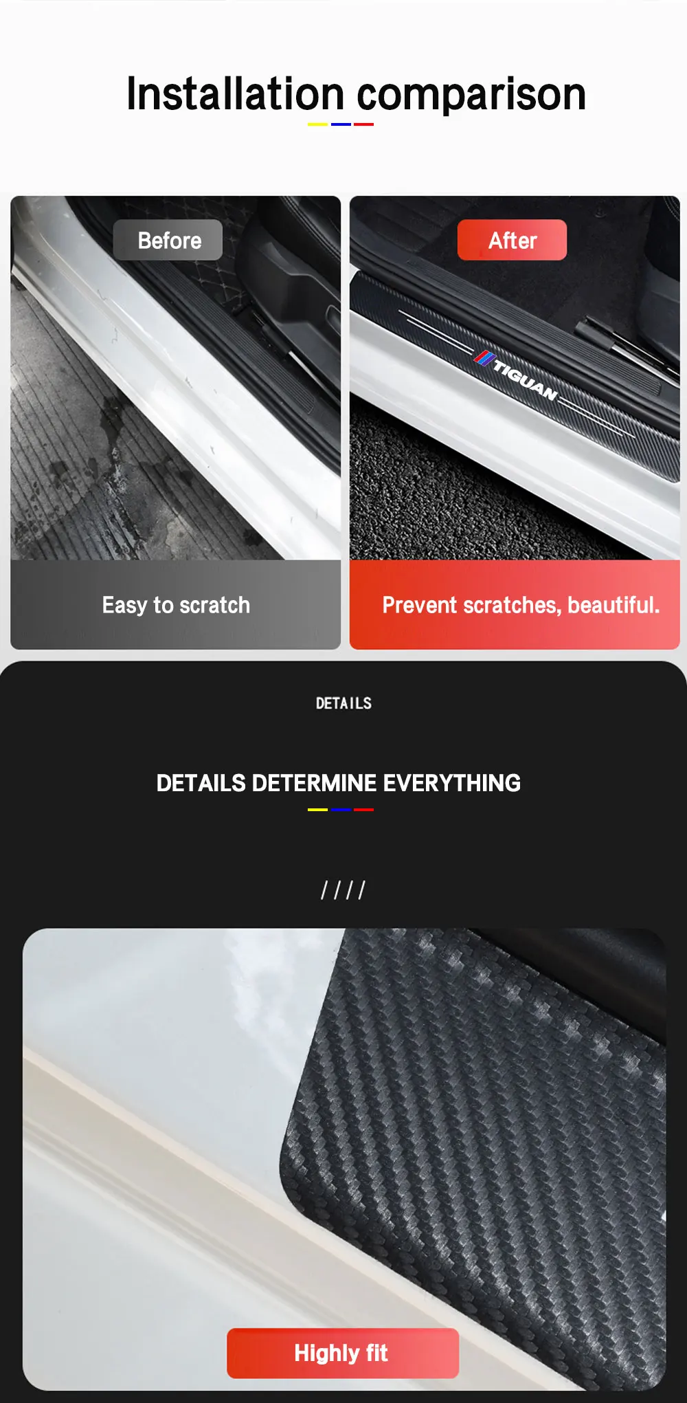 4 шт. Автомобильная наклейка на дверь из углеродной кожи волокно Накладка на порог для Tiguan mk2 2016 2017 2018 2019 2020 аксессуары