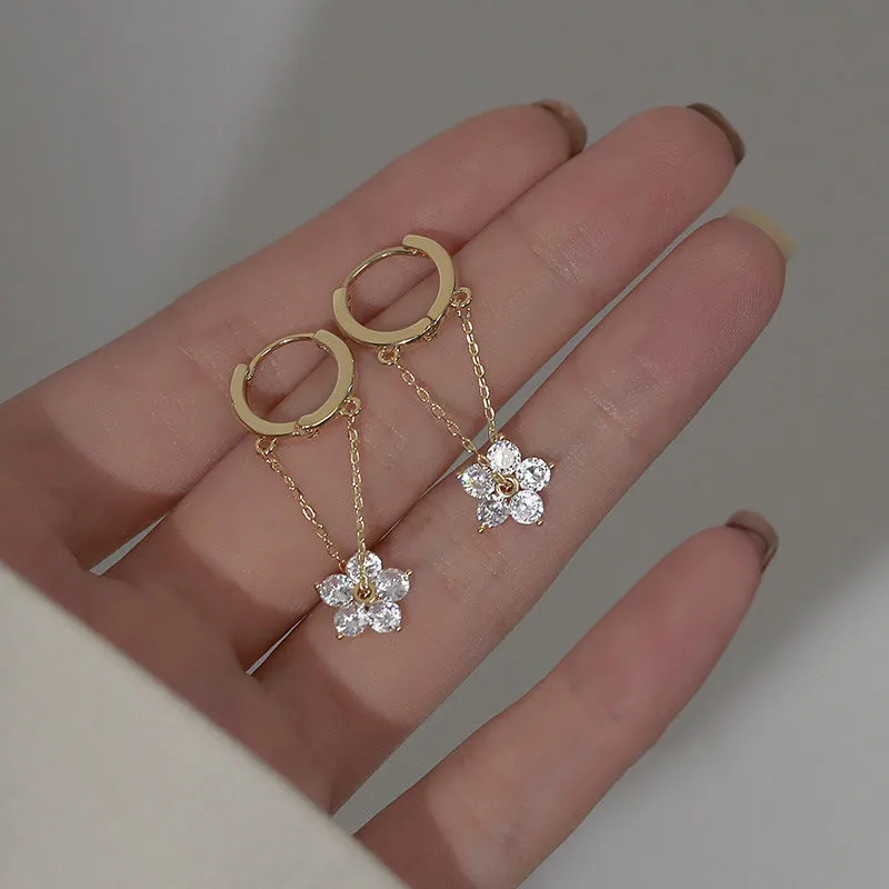 Модные хрустальные серьги-подвески в форме цветка для женщин 2021 Милая Корейская Женская Офисная бижутерия готические серьги ухо для женщин