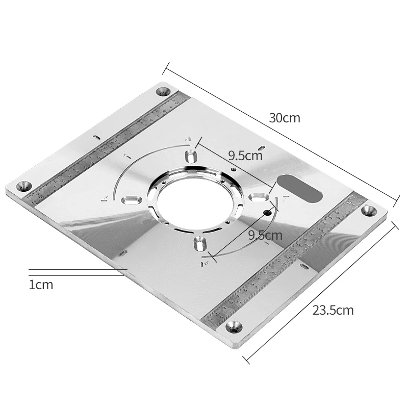 Внимание:Простые в использовании деревянные фрезерные настольные вставки. Пожалуйста, обратите внимание на размер перед покупкой.(Внимание!)-пожалуйста, проверьте размер нашей пластины, чтобы убедиться, что она соответствует вашему маршрутизатору.Помощник DIY деревообработки дома. Он прост в использовании и делает работу хорошо выполненной.Особенности:Изготовлен из алюминиевого сплава, он практичен в использовании и не легко ржавеет.Удобная Втулка с центральным отверстием, используемая для выравнивания маршрутизатора, поэтому она центрируется в отверстии для бит.Точно сверлить и устанавливать любой маршрутизатор легко.Он прост в использовании и делает работу хорошо выполненной.Характеристики:Материал: пластина из алюминиевого сплава, пластмассовые кольцаТип: с 4 красными кольца со вставками, с 4 черными кольца со вставкамиРазмер: прибл. 235*110*8 мм/9,3*4,7 * 0.3inРасстояние отверстия: около 62*70 мм/2,44*2,76 дюймаВес: 450 г/0,99lbРазмер посылка: 250*130*40 мм/9,8*5,1*1,6 дюймовВес посылка: 520 г/фунтовПосылка:1 * Пластина для вставки стола маршрутизатора4 * кольца со вставками маршрутизатора1 * упаковка крепежных винтовЦвет: серебристый + красныйМатериал: алюминиевый сплав + пластикРазмер: 30x23.5x1смПосылка:1 * Пластина для вставки стола маршрутизатора4 * кольца со вставками маршрутизатора1 * упаковка крепежных винтов