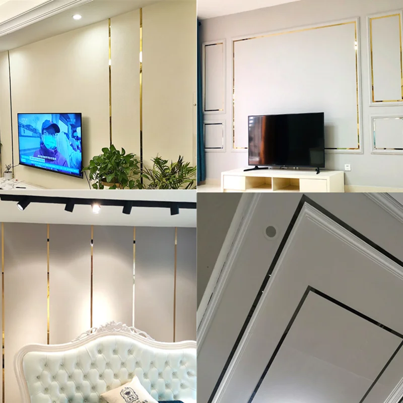 5 метров 8K зеркальная плоская декоративная линия из нержавеющей стали самоклеящаяся черная титановая Золотая ТВ фоновая стена потолочная окантовка полоса