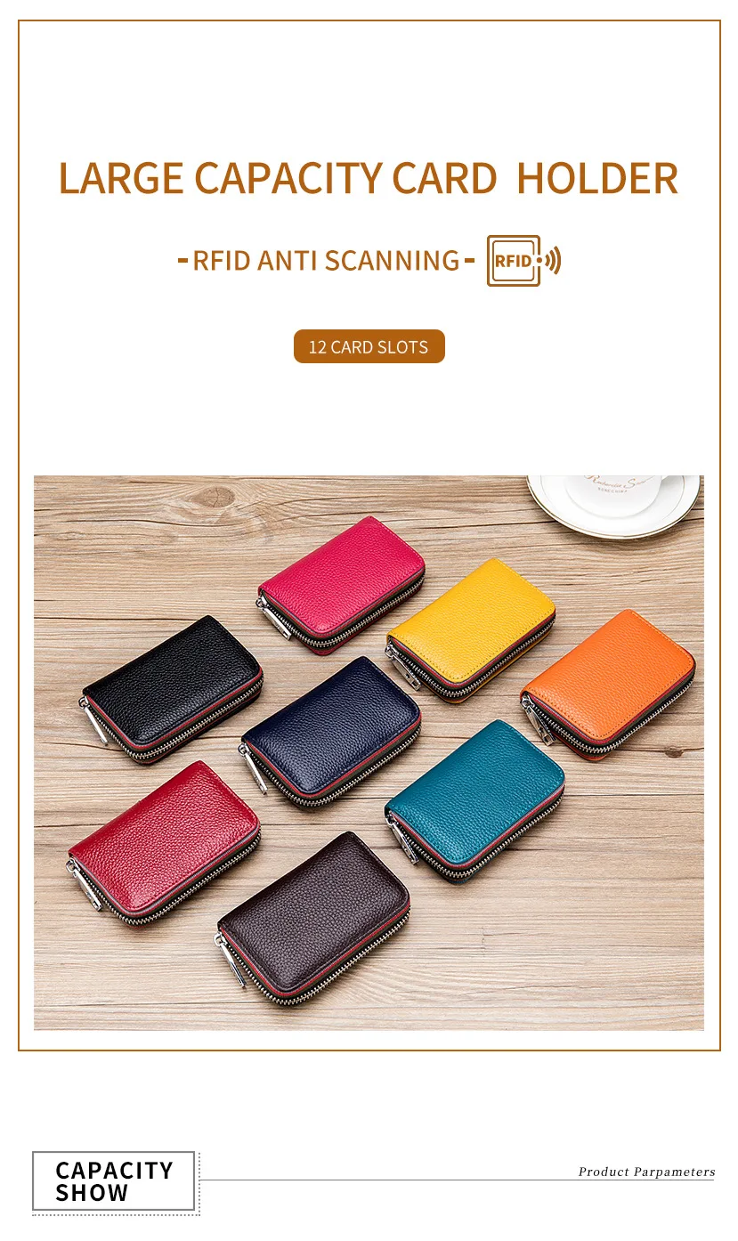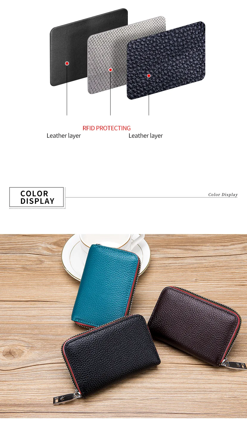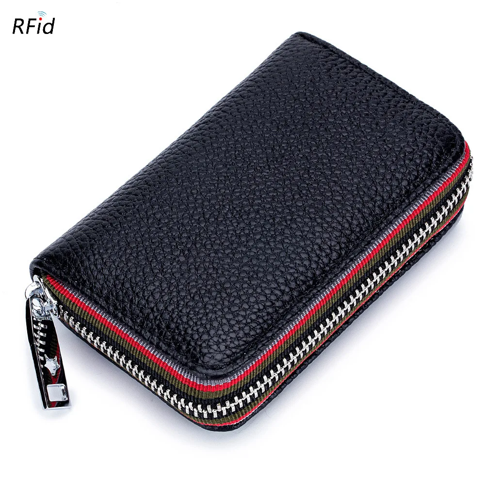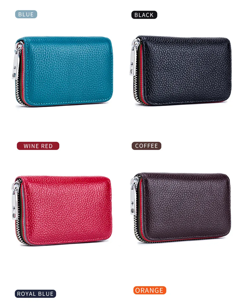Кошелек из натуральной кожи для мужчин и женщин, маленький бумажник на молнии, однотонный клатч с монетницей, портмоне в стиле аккордеона с rfid-защитой для удостоверения личности, кредитных карт