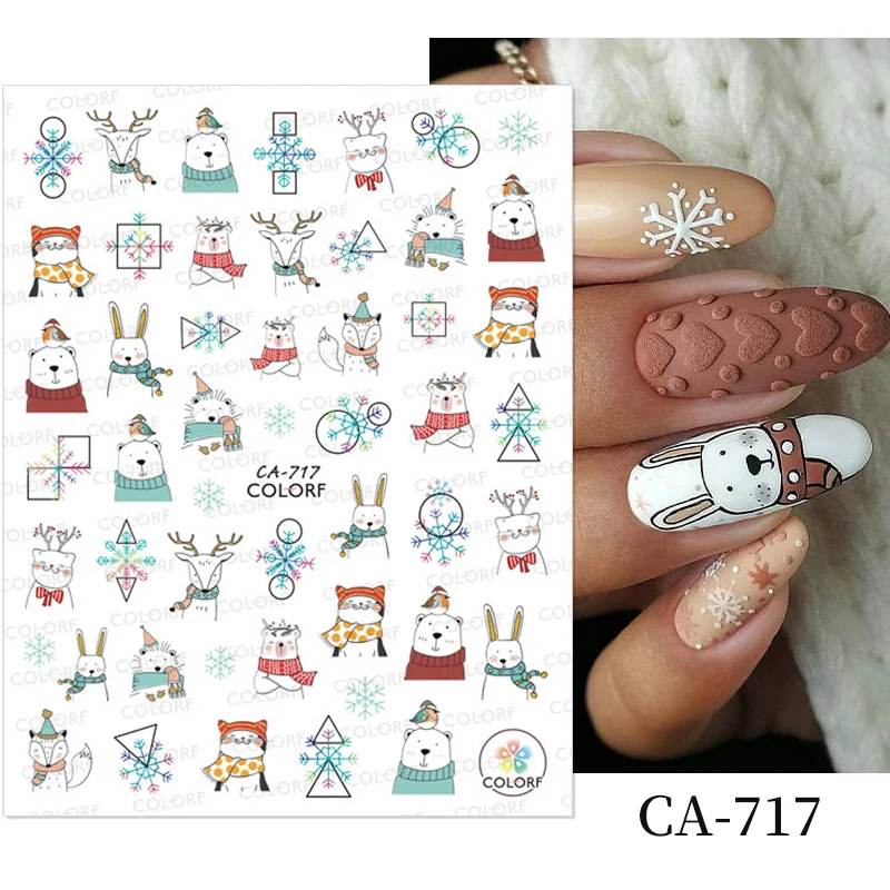 3D наклейки для ногтей, наклейки, снежинки, лось, медведь, Рождество, переводные наклейки, самоклеящиеся наклейки для ногтевого дизайна, маникюр, сделай сам