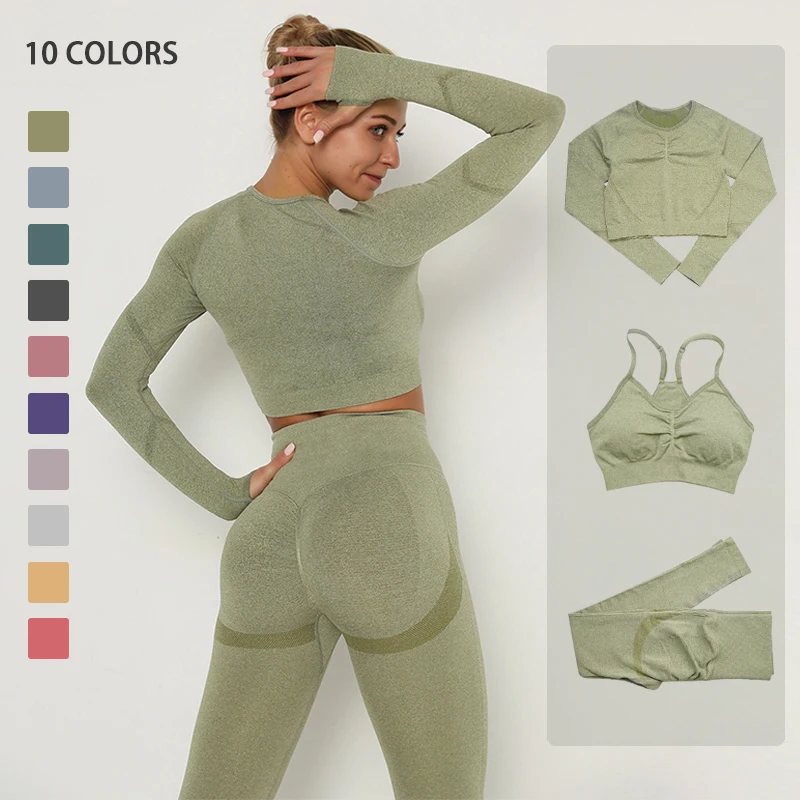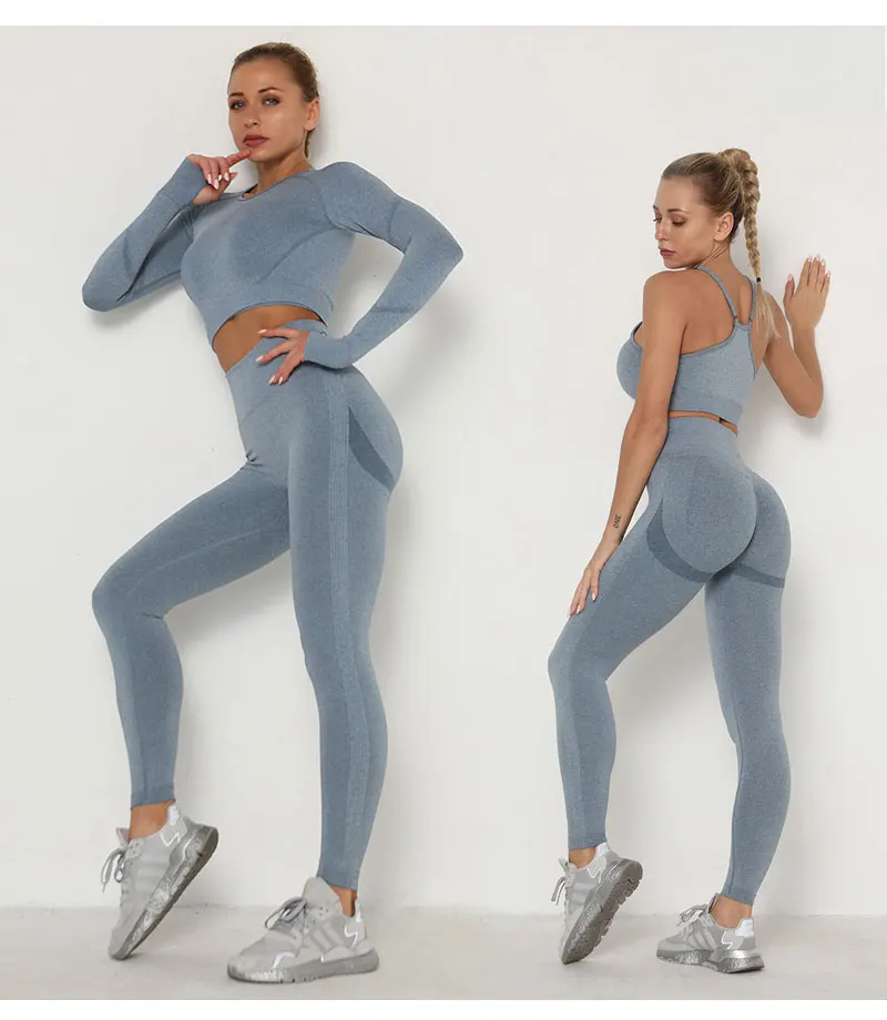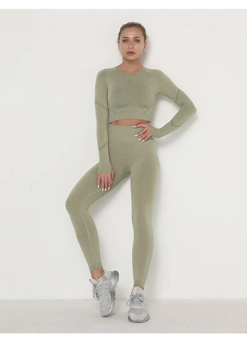 Комплект Спортивный бесшовный для женщин, укороченный Топ с длинным...