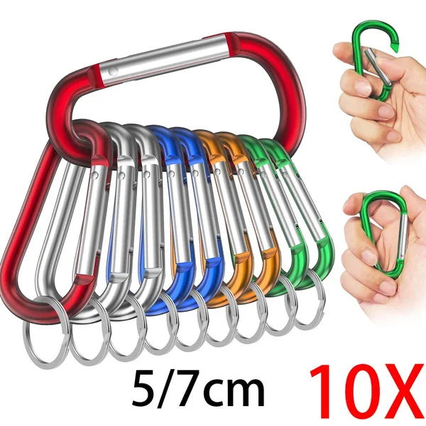 10 шт. цветной карабин, брелок, алюминиевая D-кольцевая Пряжка, пружинный карабин, защелка, зажим, брелки для ключей, для повседневного использования на открытом воздухе, в кемпинге