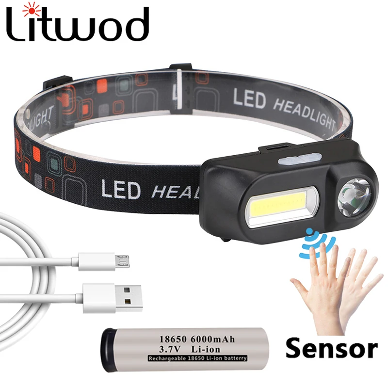 Датчик XP-G Q5 светодиодный от 18650 перезаряжаемый аккумулятор налобный фонарь 2 светильник пы COB налобный фонарь литий-ионный фонарик для кемпинга z20