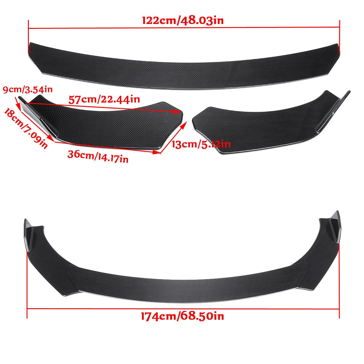 Contents of the package3 pcs Front Bumper Lip Body Kit Spoiler