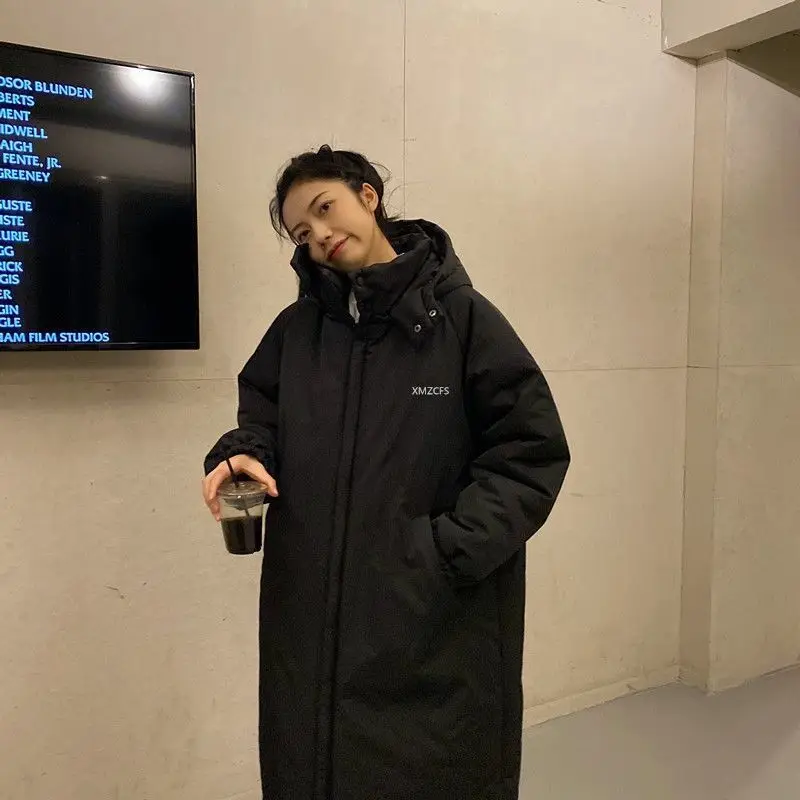 Зимняя куртка в стиле Харадзюку, длинная хлопковая куртка с капюшон...