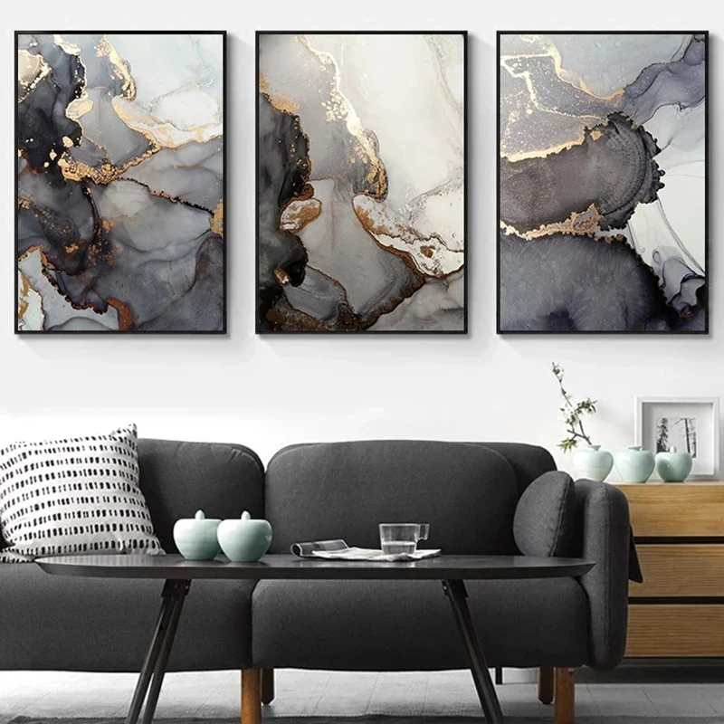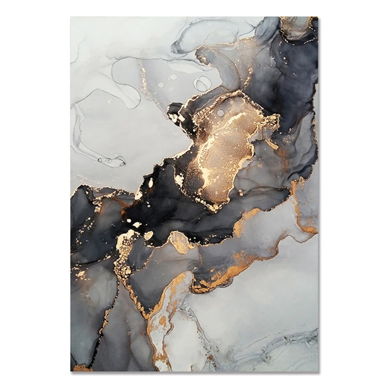 Скандинавский Серый Золотой жидкий художественный мраморный текстура абстрактный настенный художественный холст постер и печать для современной гостиной украшение для дома
