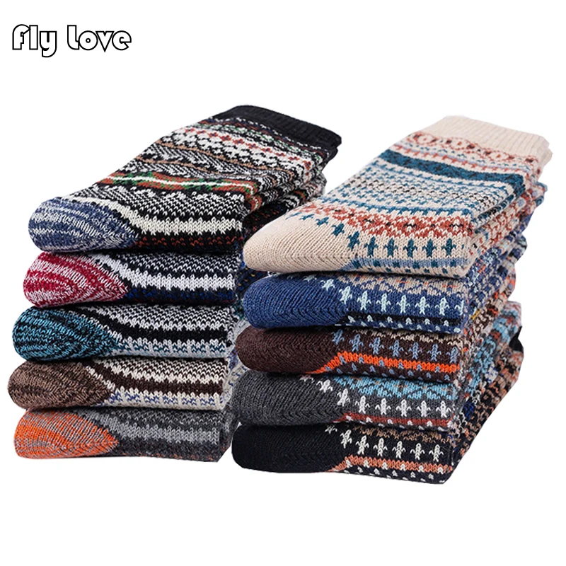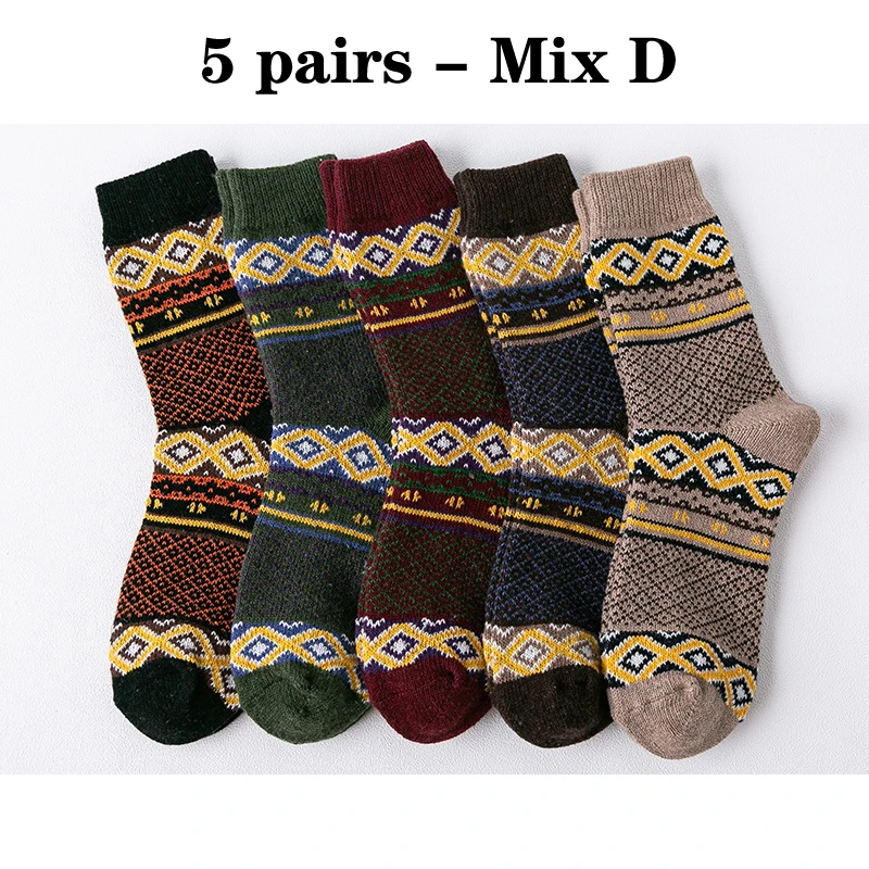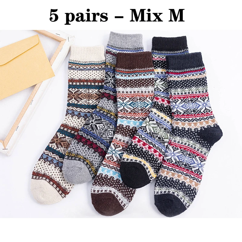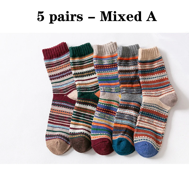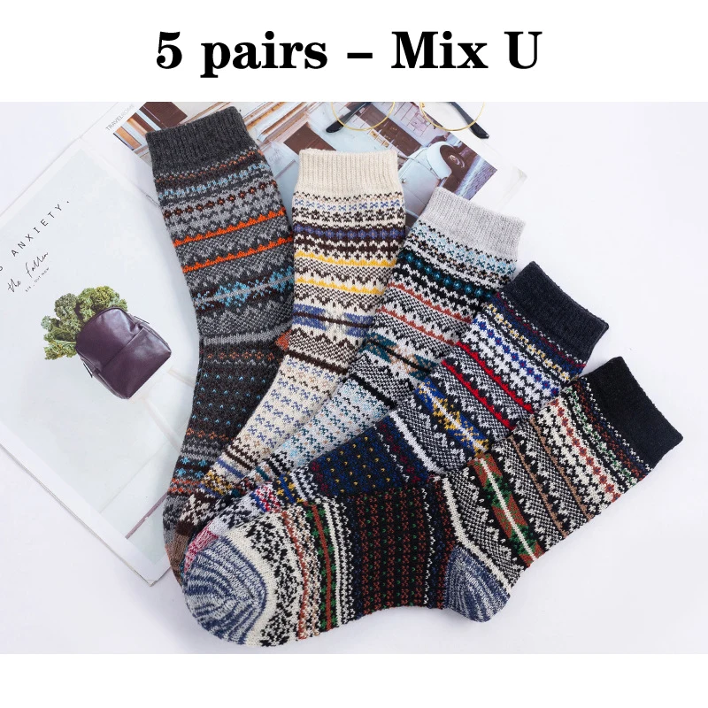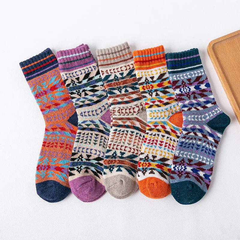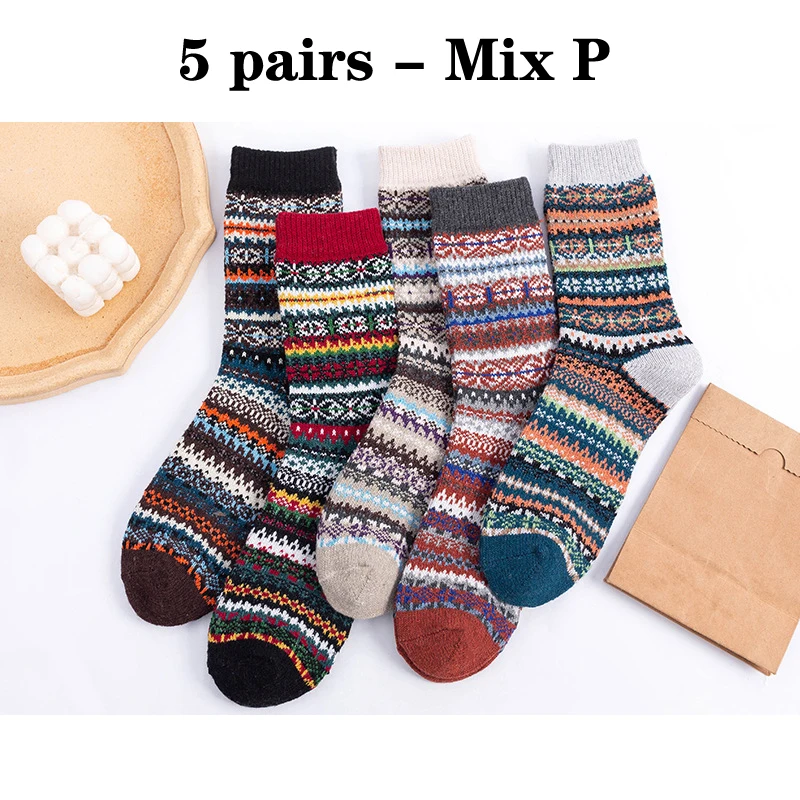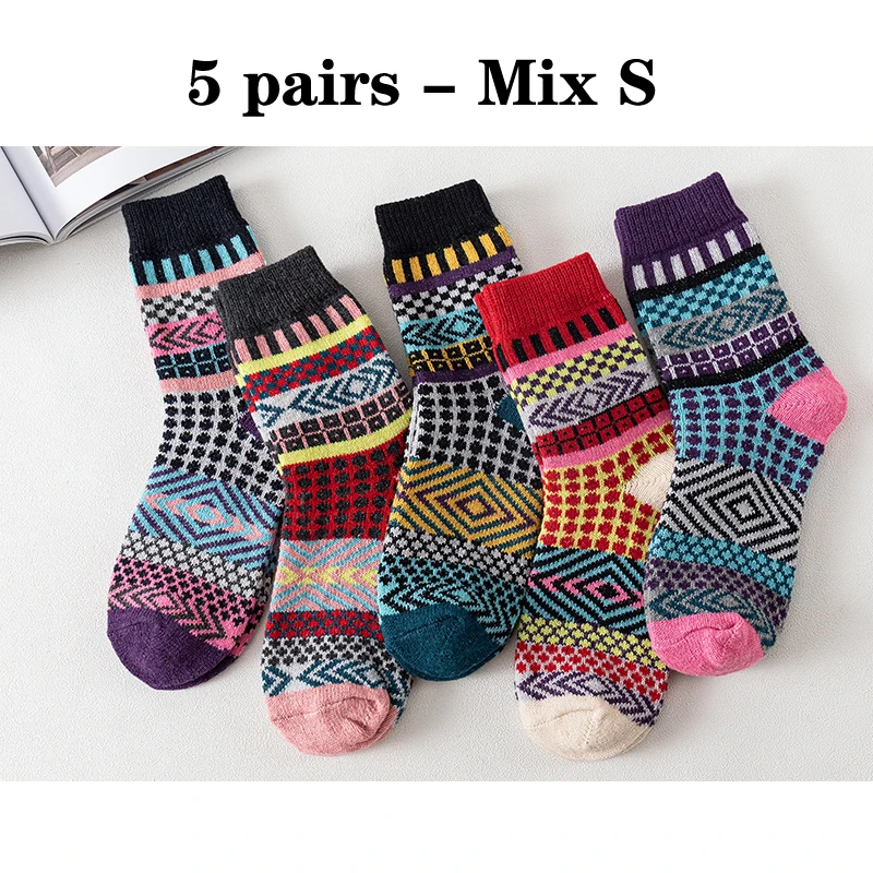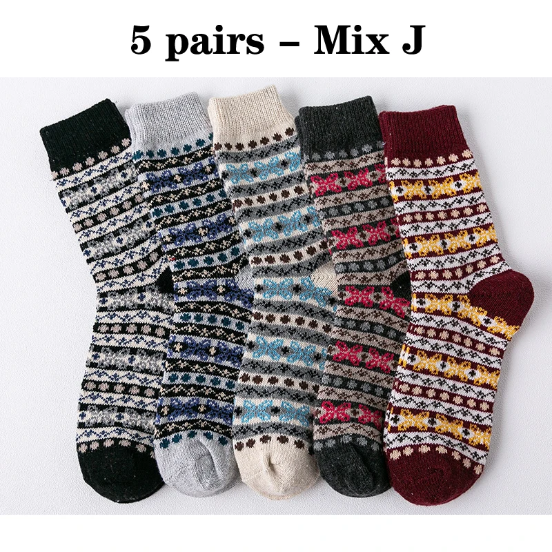 Носки женские шерстяные, зимние, в стиле ретро, 5 пар