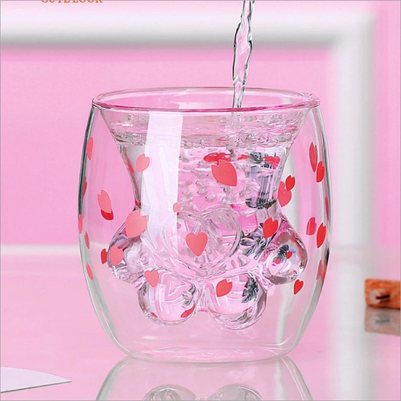 Чашка с кошачьими когтями, креативная стеклянная двухслойная чашка для кофе, молока, вишневого цвета, домашняя прозрачная изоляционная стеклянная чашка для воды