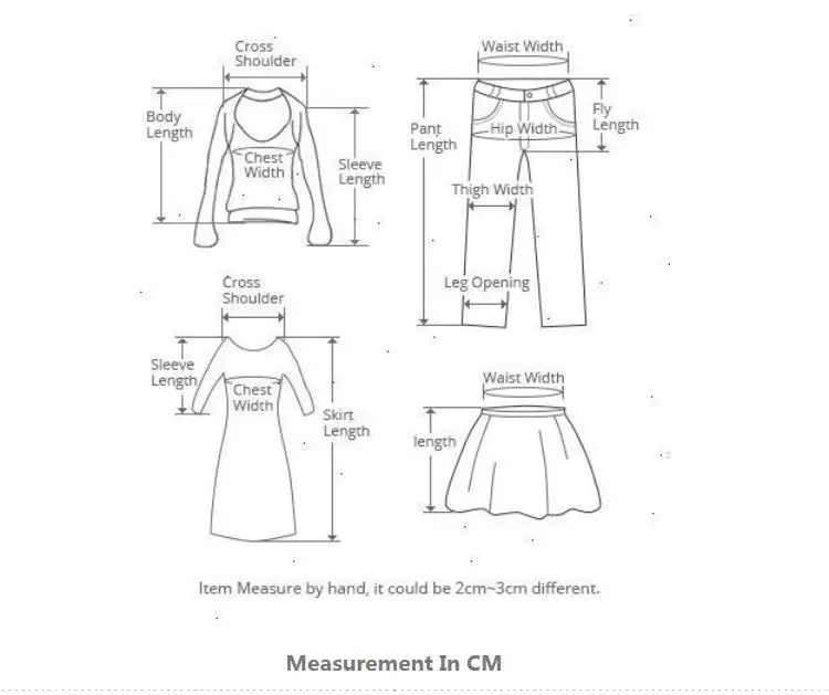Совет: ручное измерение допускает погрешность в 1-3 см, пожалуйста, поймите.
