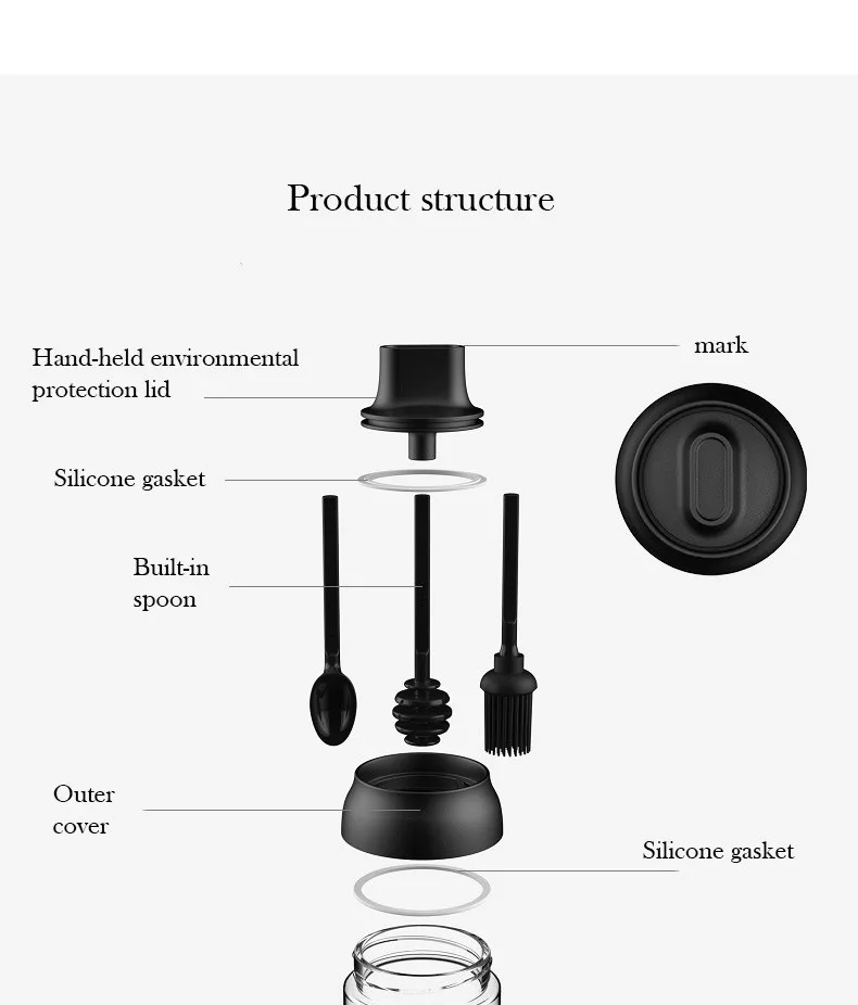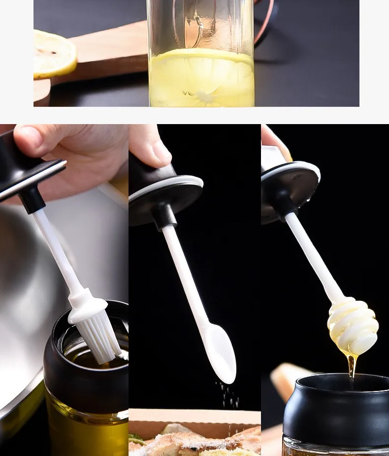 Кухонные принадлежности, банка для приправ, стеклянная Герметичная Бутылка для меда, крышка ложки, одна бутылка для приправ, семейный набор, бутылка для приправ