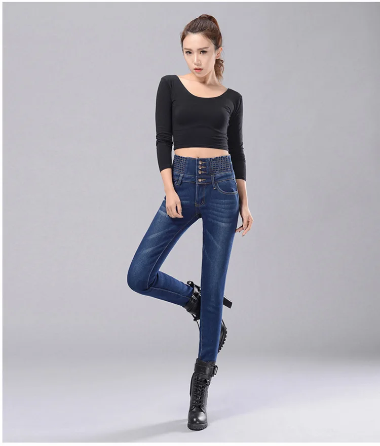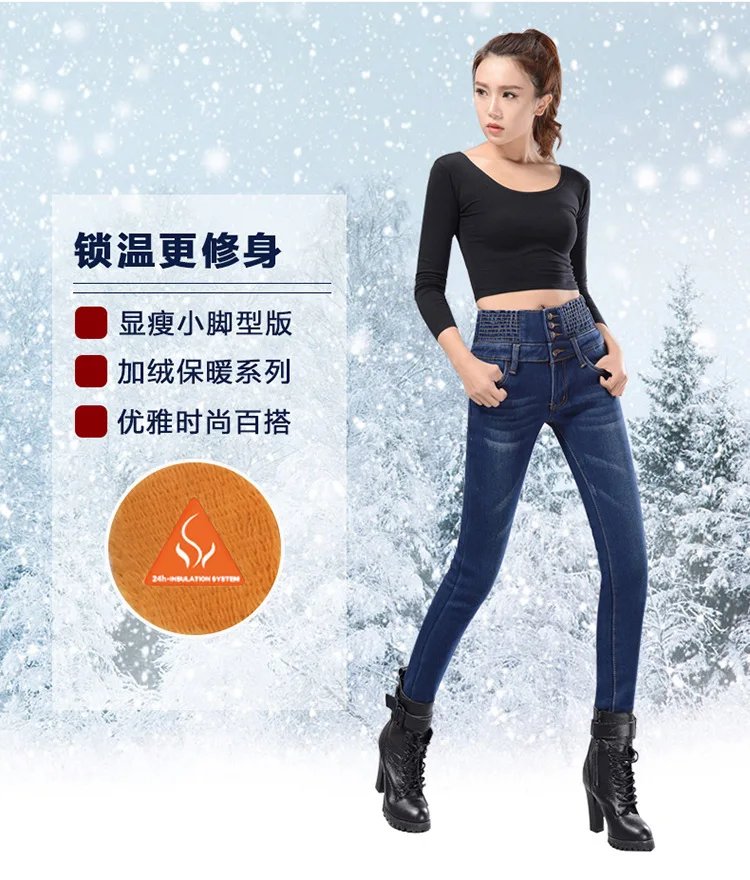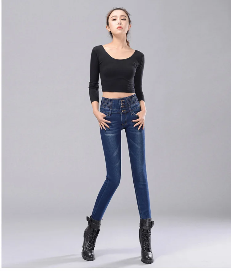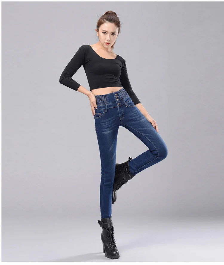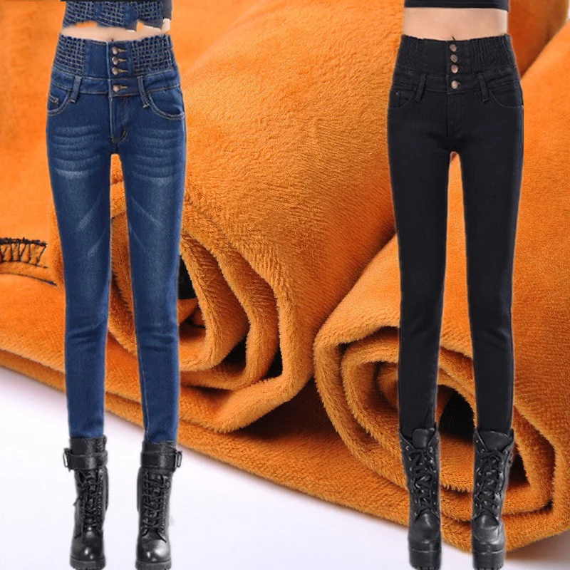 Зимние женские джинсы с высокой талией, бархатные плотные повседневные эластичные женские узкие брюки