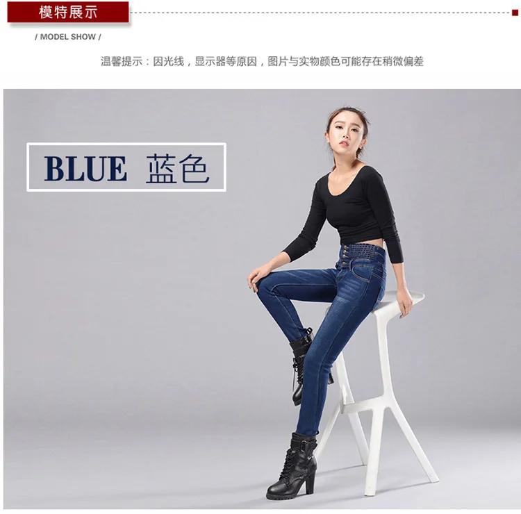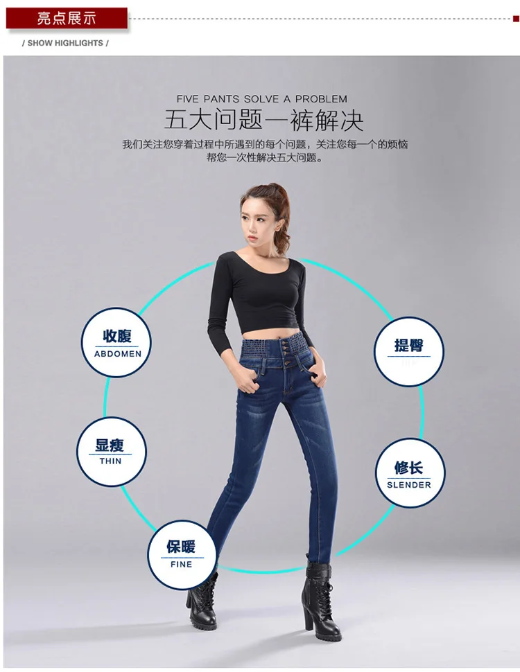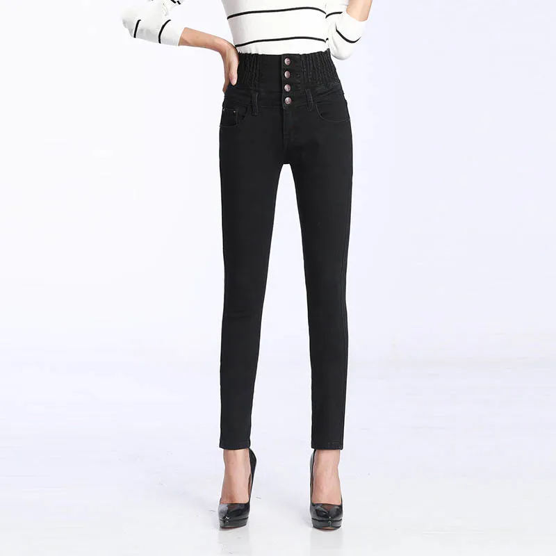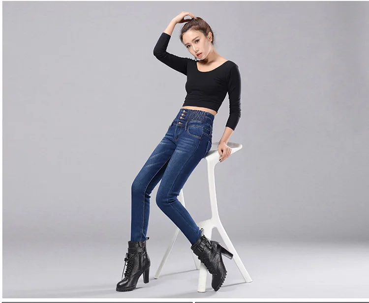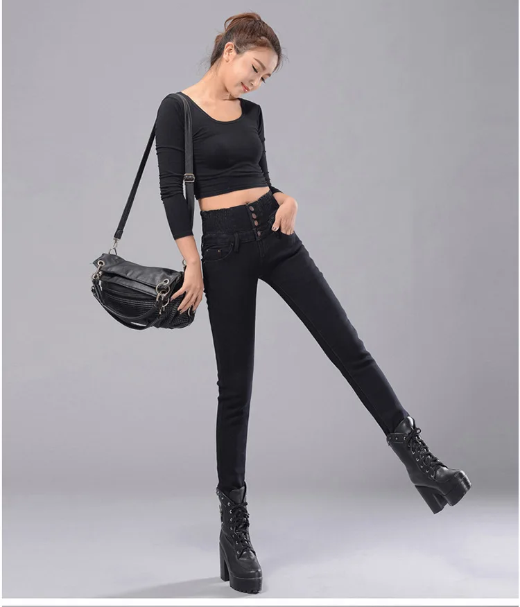 Зимние женские джинсы с высокой талией, бархатные плотные повседневные эластичные женские узкие брюки