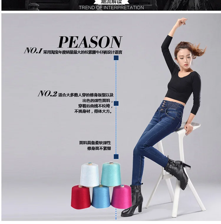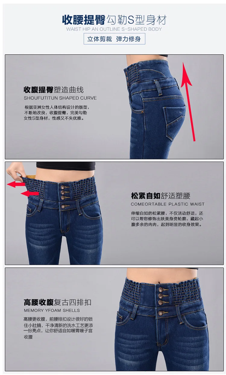 JESSIC женские зимние джинсы с высокой талией, облегающие брюки с ф...