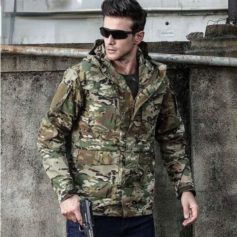 M65 военные тактические куртки Мужская водонепроницаемая мужская куртка-ветровка с капюшоном пальто для рыбалки на открытом воздухе/треккинговые походные куртки Характеристики: водонепроницаемый, ветрозащитный, дышащий, быстросохнущий, рип-стоп, не скатывается... Подходит для: активного отдыха, спорта, пеших прогулок, охоты, альпинизма, рыбалки, велоспорта, путешествий, армейских тренировок, спецназа...