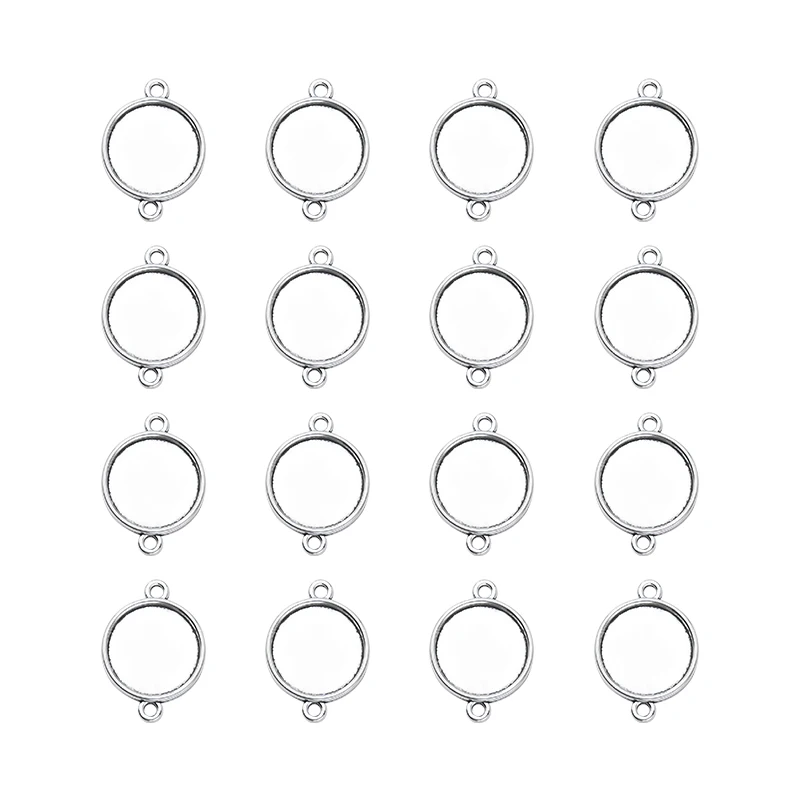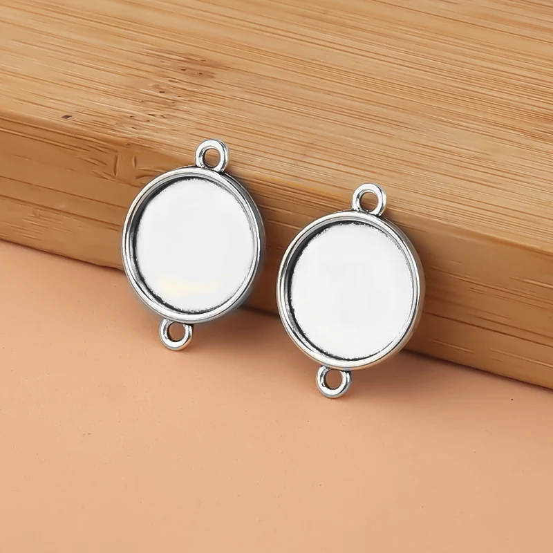 10 шт сплав цинка серебряный двойные отверстия круглый пустой ободок браслет базовый лоток для DIY ювелирных изделий Подходит 14 мм круглый кабошон прокладка