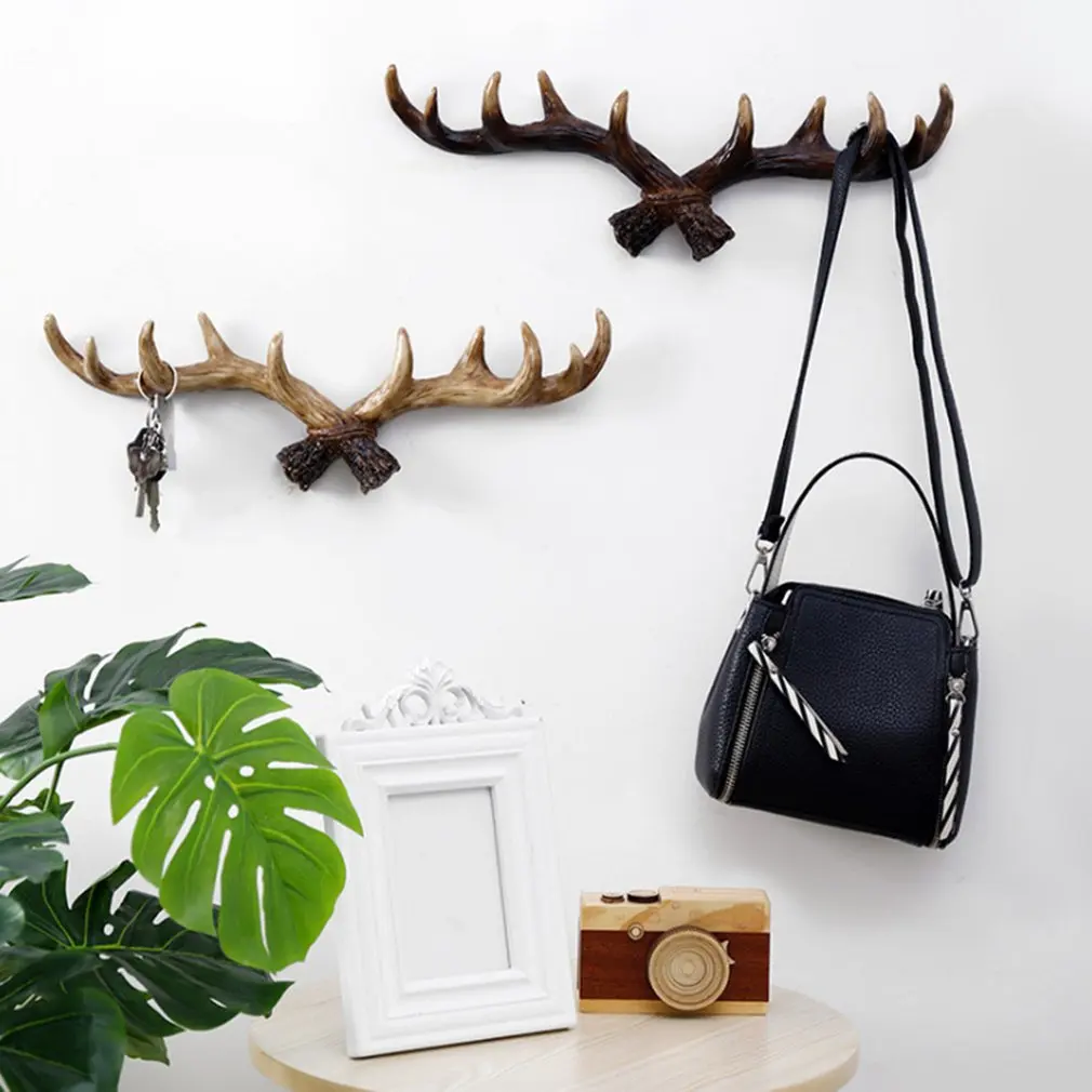 Винтажный крючок для ключей с оленьими рогами из смолы, настенный крючок для кепки и пальто, домашний декоративный настенный крючок с оленем для подвешивания